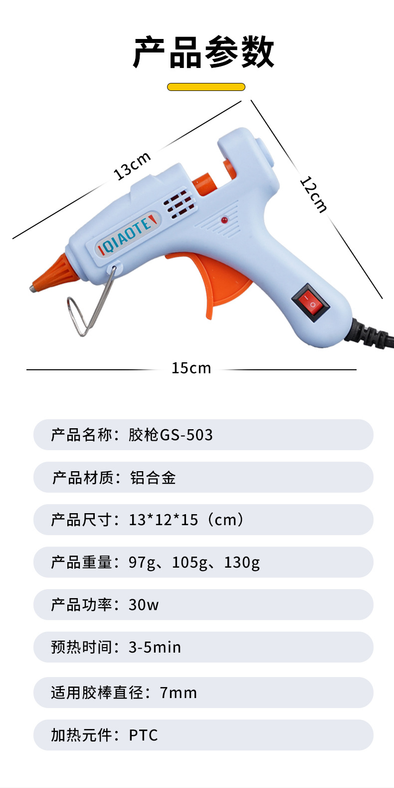 30W 핫멜트 아교 총 전기 핫 아교 총 국경 재고 색상 스몰 사이즈 가정용 손 도구 7mm 접착제 스틱 핫멜트 건