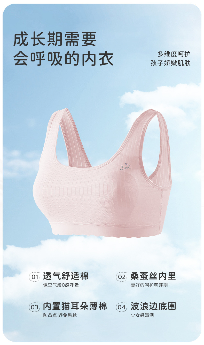 어린이 발달 속옷 소녀 브래지어 여자 코르셋 초등학생 빛 통기성 작은 조끼 무대 8-12