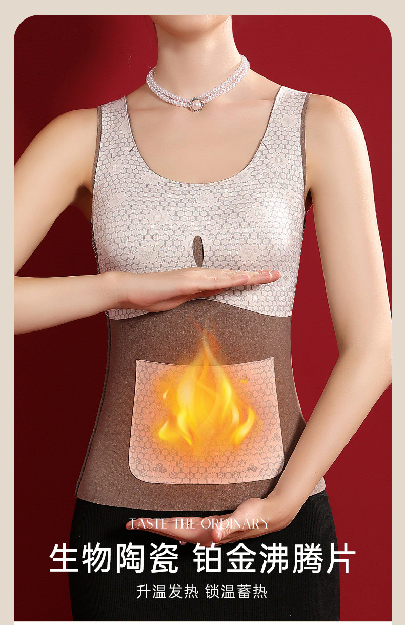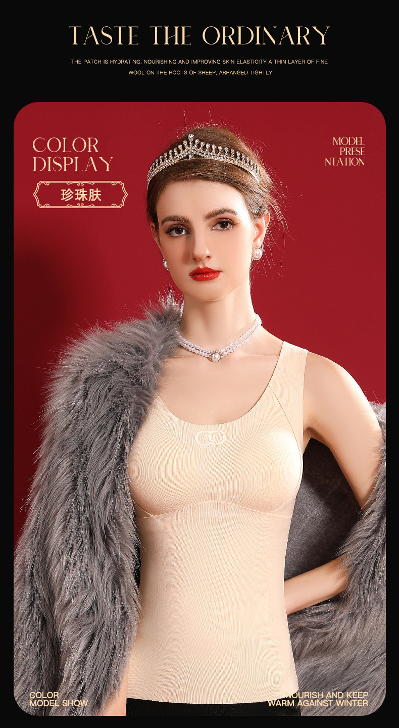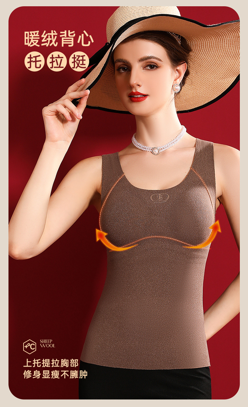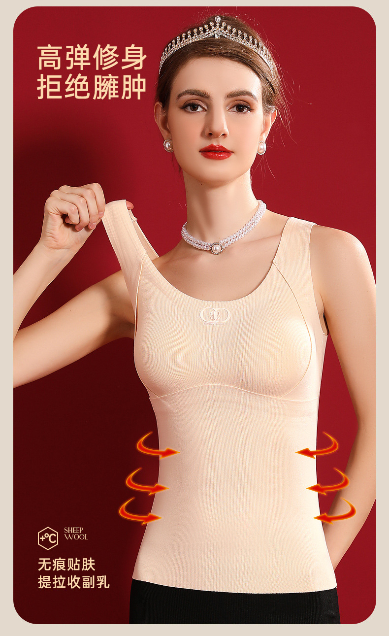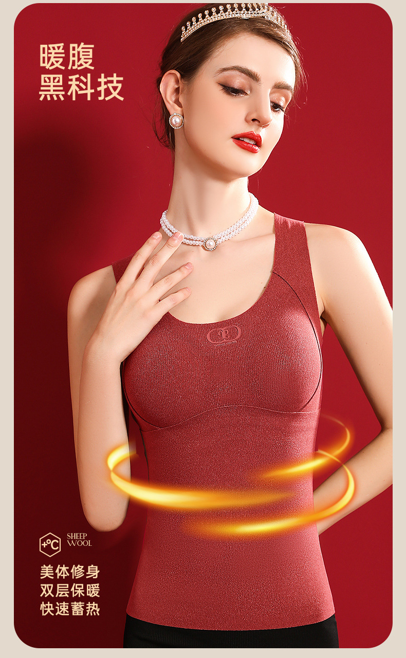 여성용 가슴 패드가 달린 보스 울 원활한 일체형 항균 조끼 열 저장 슬림 핏 슬림 핏 열 속옷스토어 가기