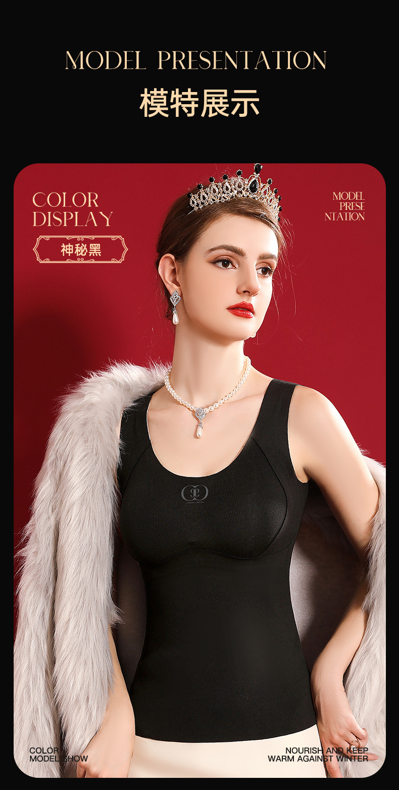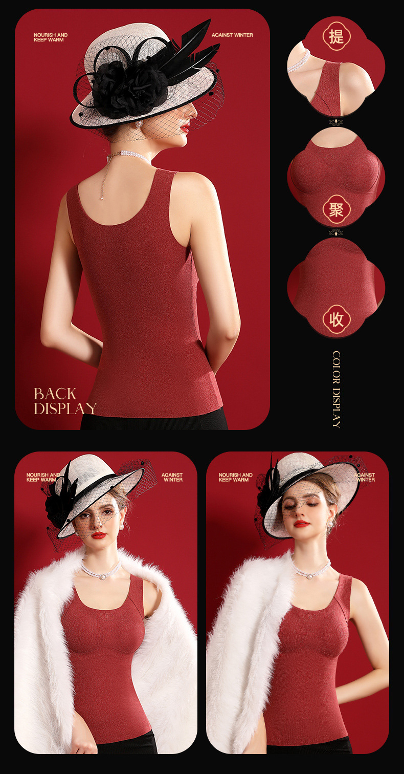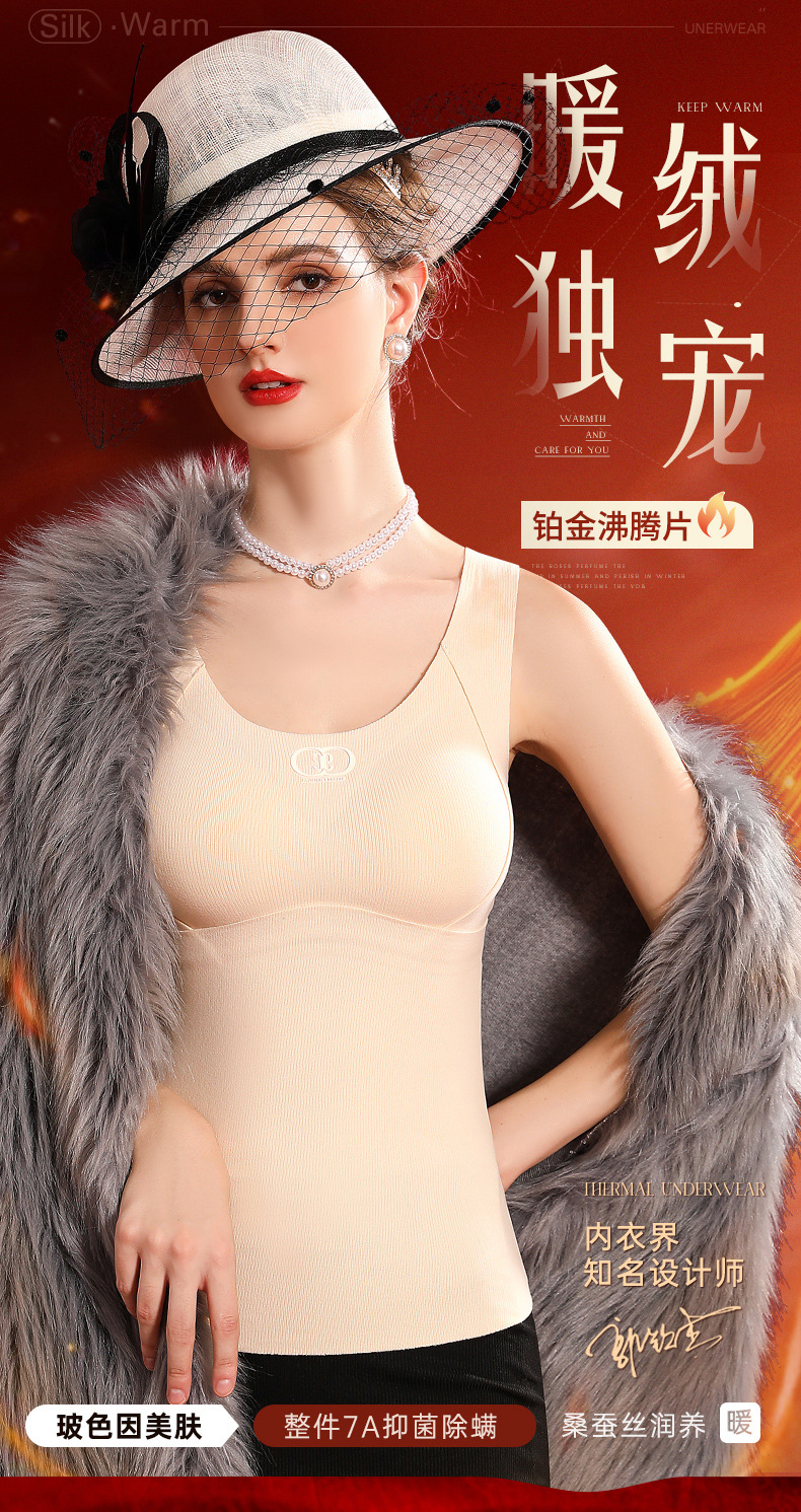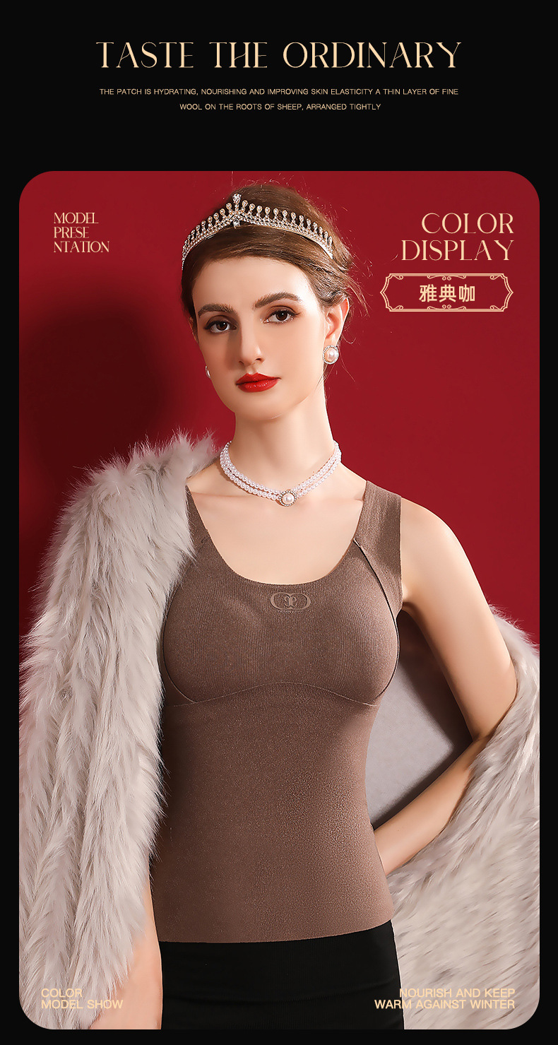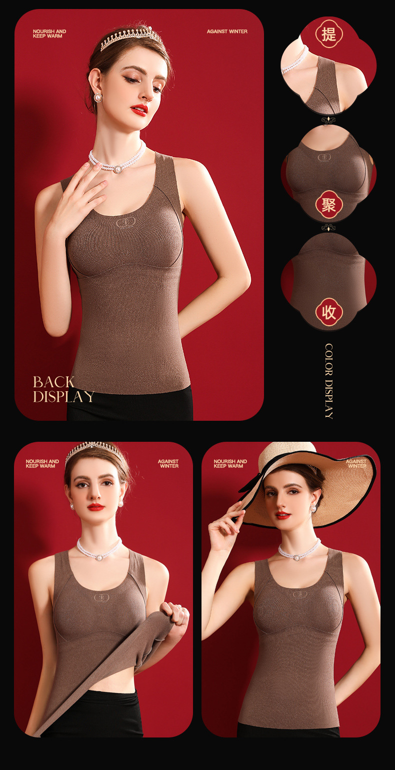 여성용 가슴 패드가 달린 보스 울 원활한 일체형 항균 조끼 열 저장 슬림 핏 슬림 핏 열 속옷스토어 가기