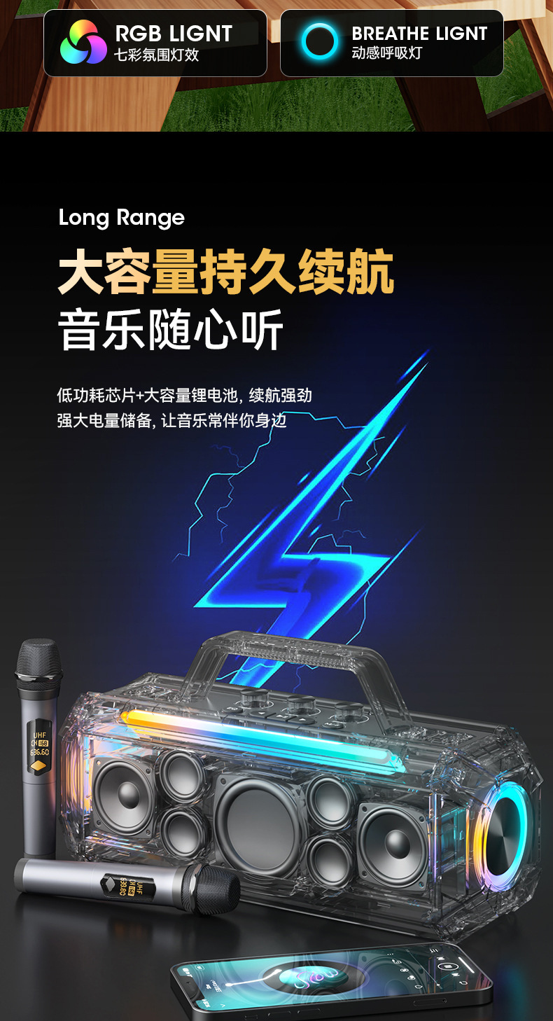 블루투스 스피커 야외 광장 댄스용 마이크 포함 노래반주 중저음 서브우퍼 오디오 공장 고음질