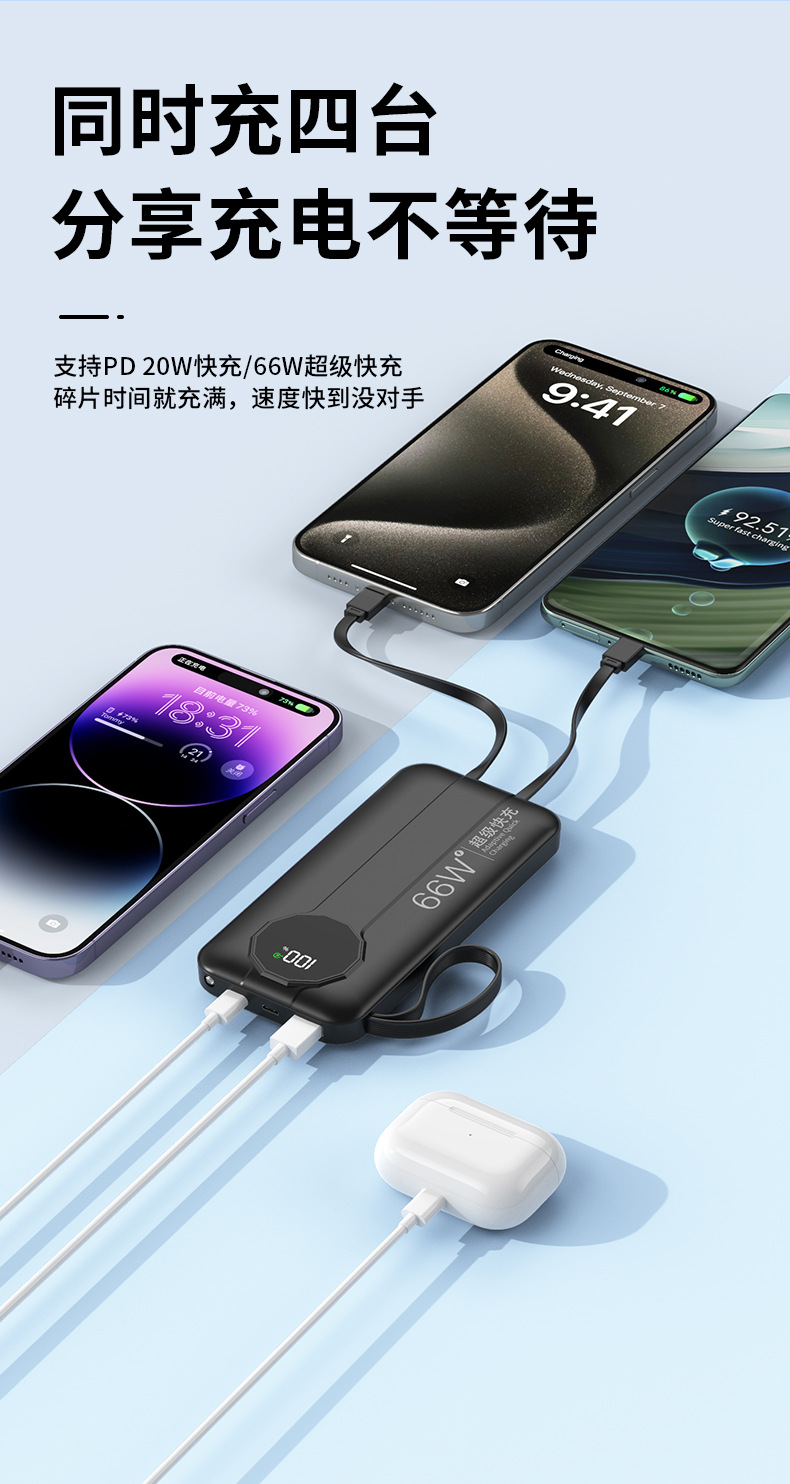 라인 20000 mA 실제 표준 대용량 모바일 전원 공급 장치로 국경을 넘는 새로운 초고속 충전 66w 충전 보물