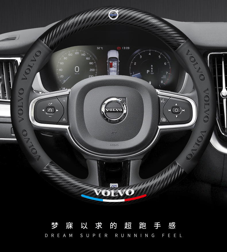볼보 탄소 섬유 스티어링 휠 커버 XC40XC60XC90S60S90V40V60V90 범용 자동차 핸들 커버에 적용 가능