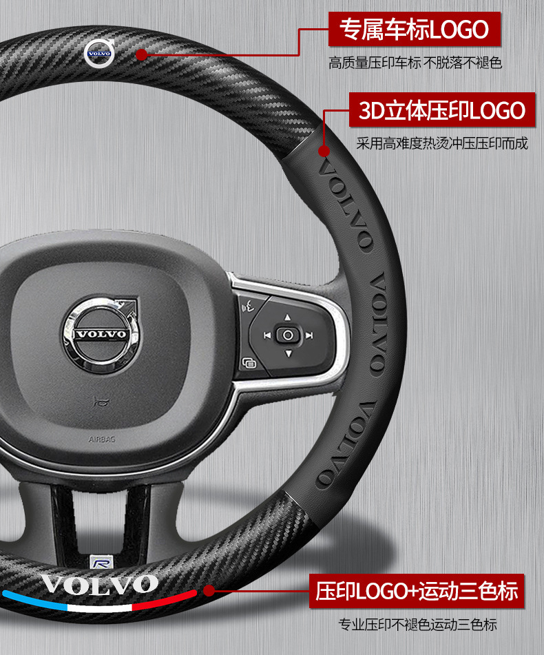 볼보 탄소 섬유 스티어링 휠 커버 XC40XC60XC90S60S90V40V60V90 범용 자동차 핸들 커버에 적용 가능스토어 가기