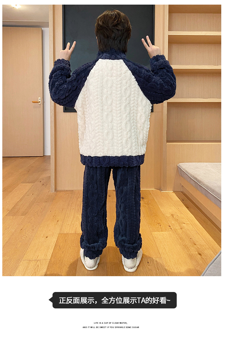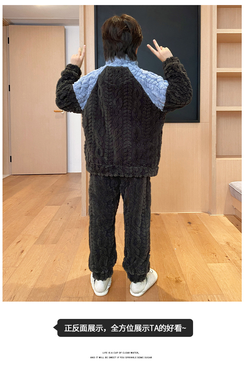 어린이 잠옷 가을과 겨울 플란넬 산호 소년 세트 지퍼 기모 어린이를위한 두꺼운 겨울 스타일스토어 가기