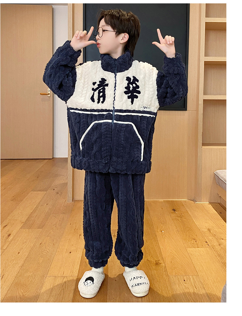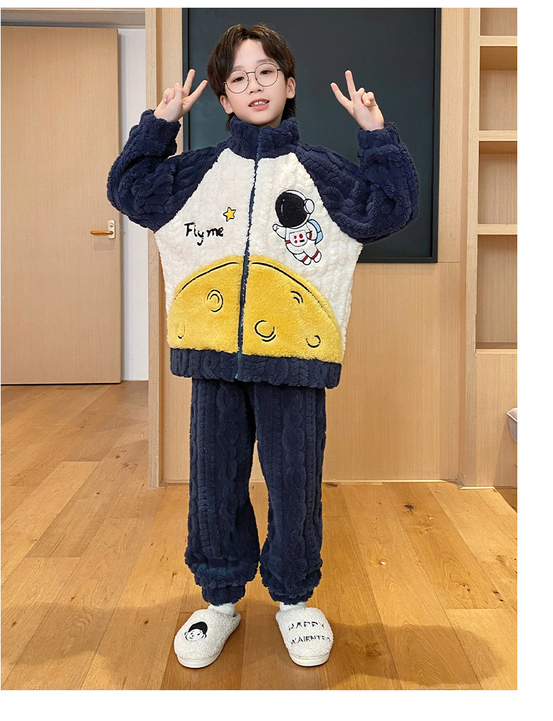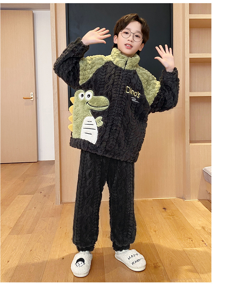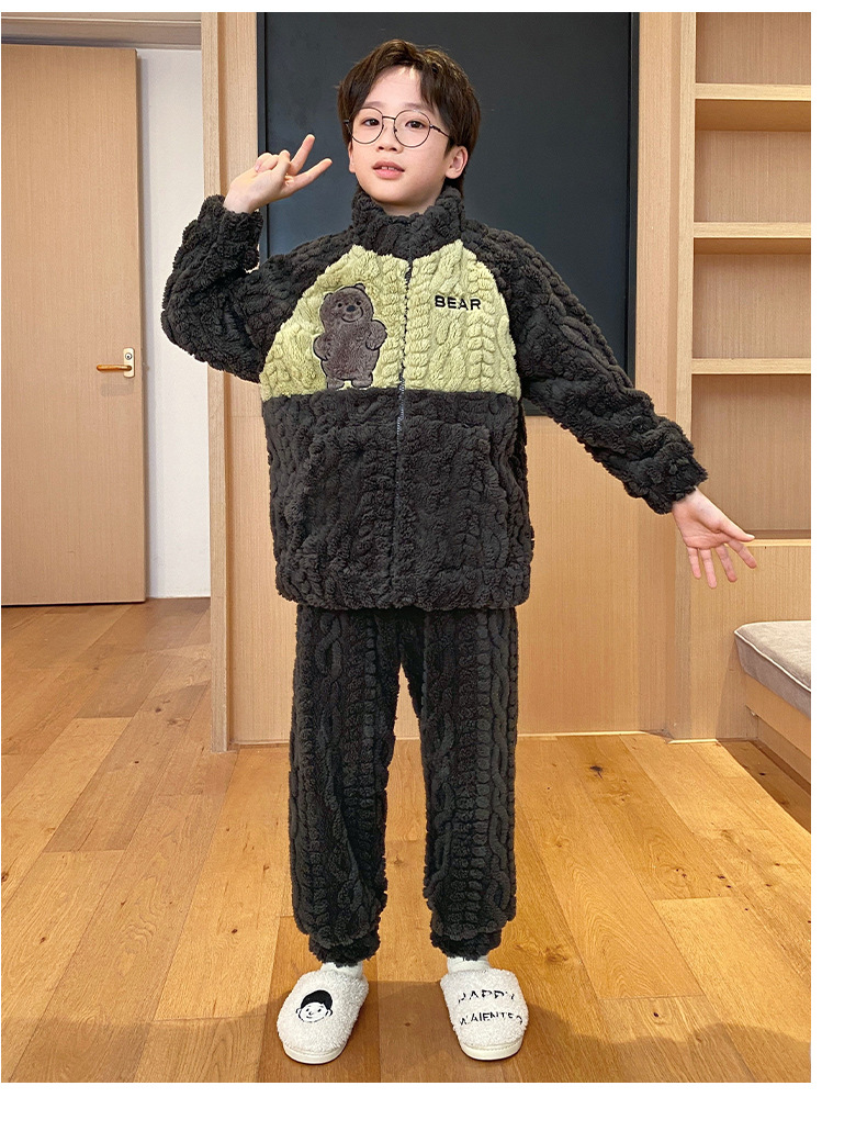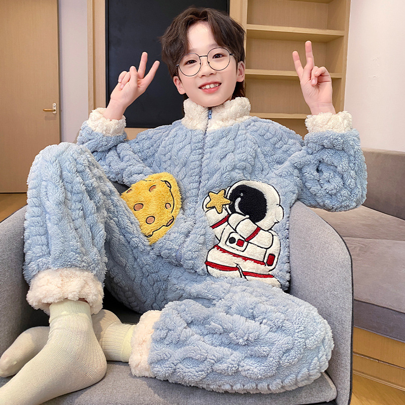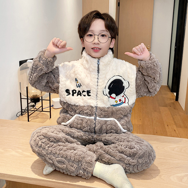 어린이 잠옷 가을과 겨울 플란넬 산호 소년 세트 지퍼 기모 어린이를위한 두꺼운 겨울 스타일