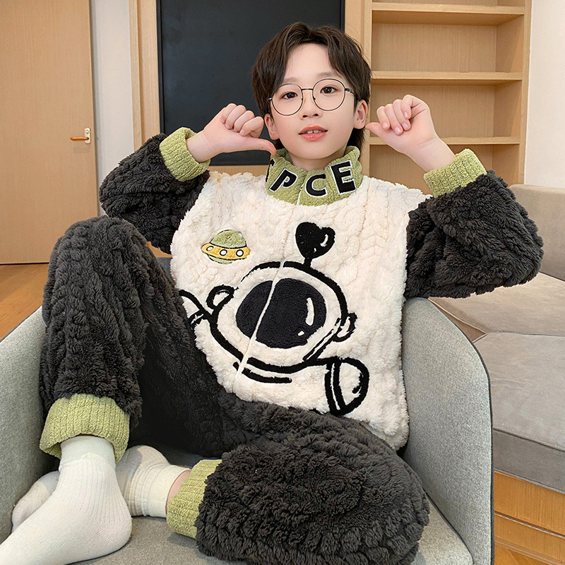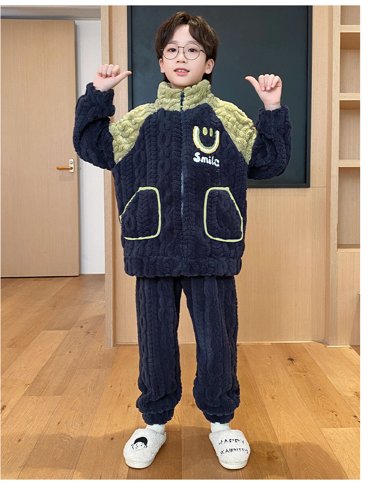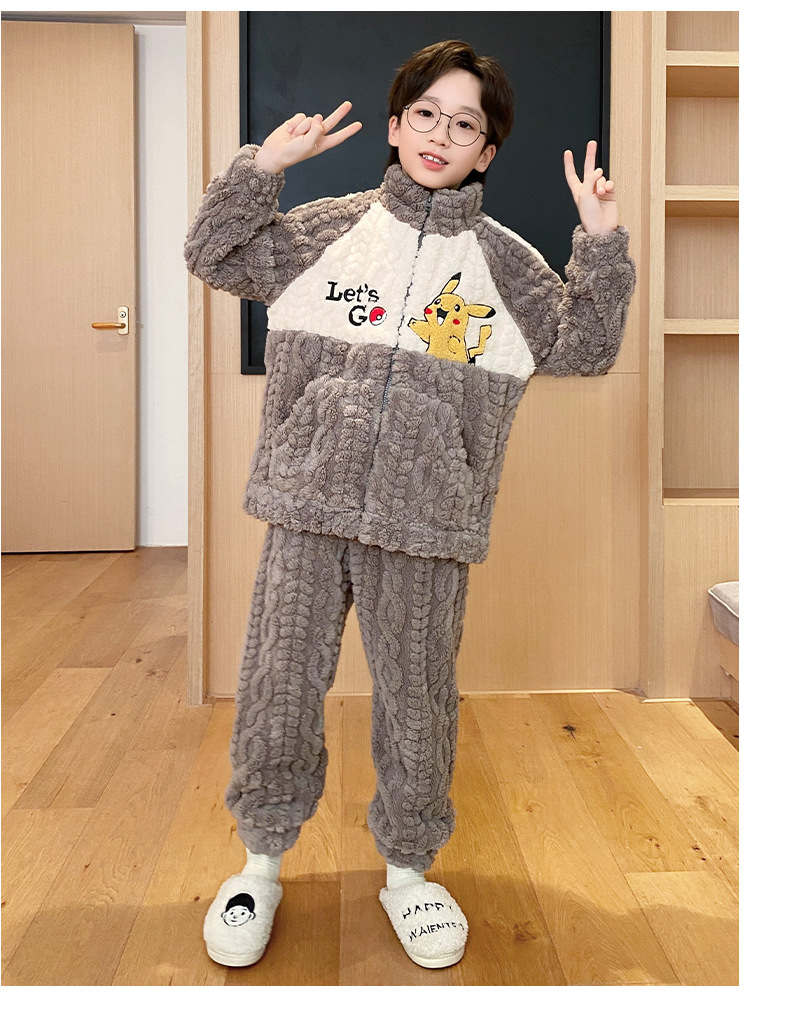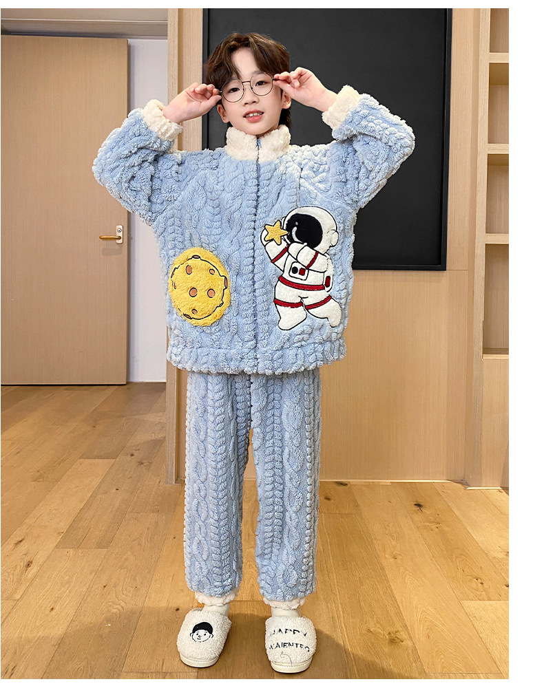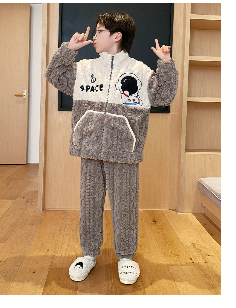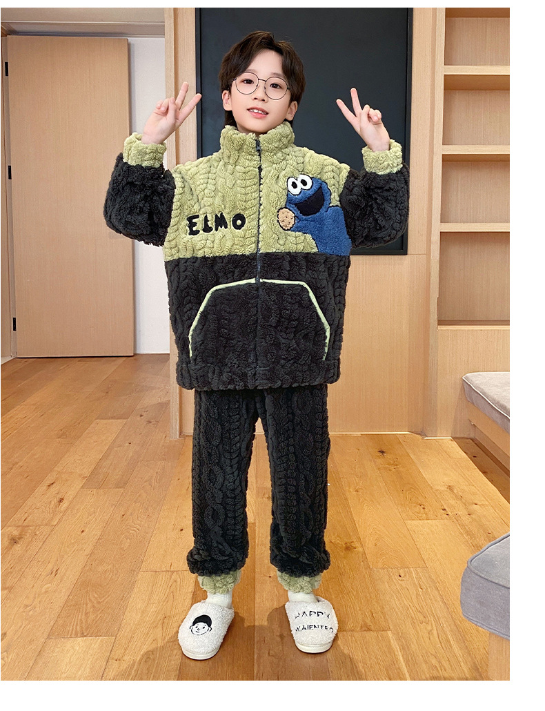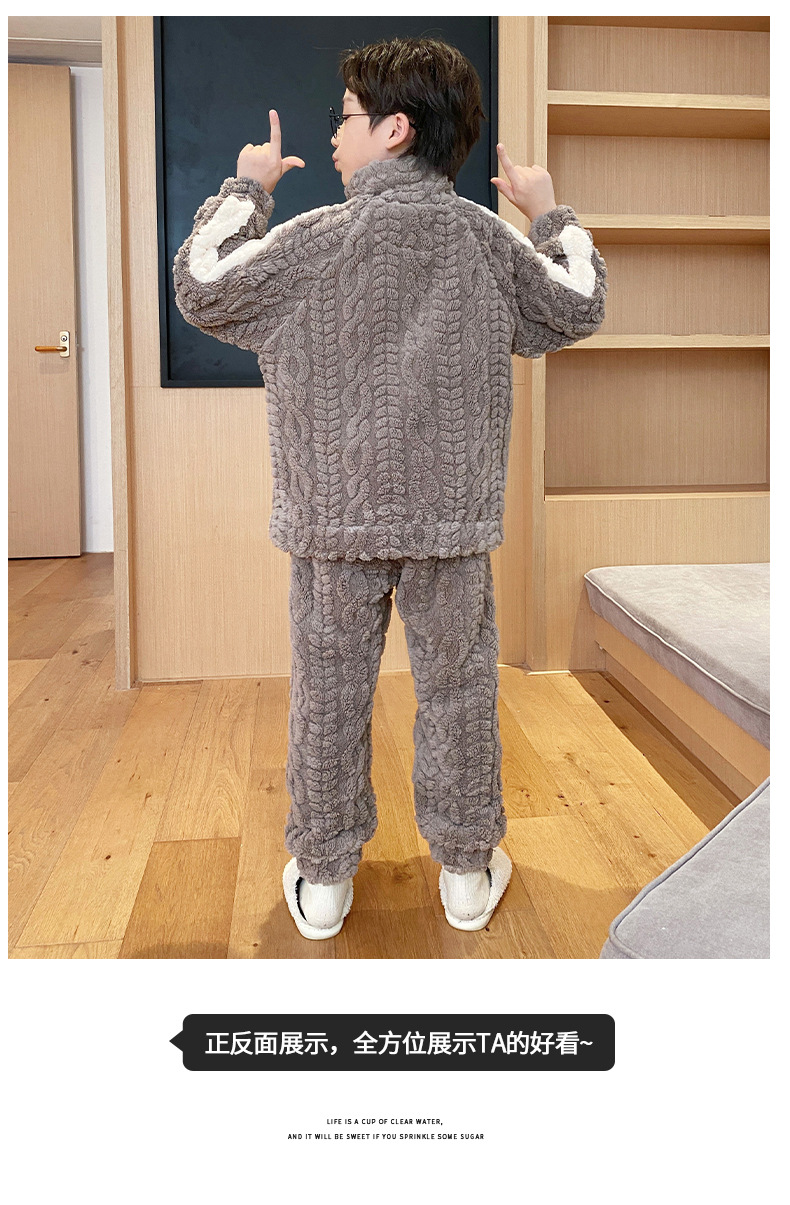 어린이 잠옷 가을과 겨울 플란넬 산호 소년 세트 지퍼 기모 어린이를위한 두꺼운 겨울 스타일