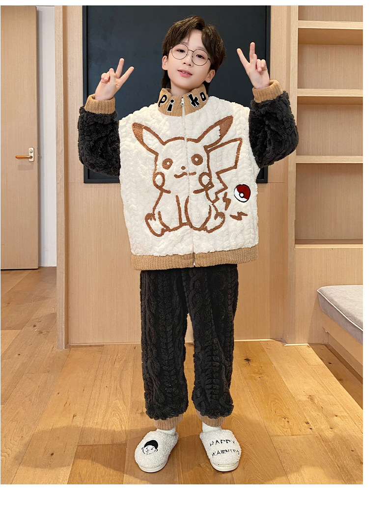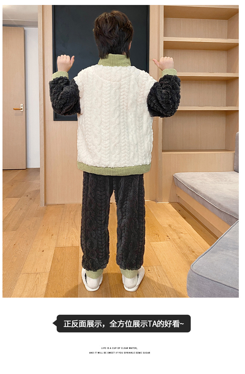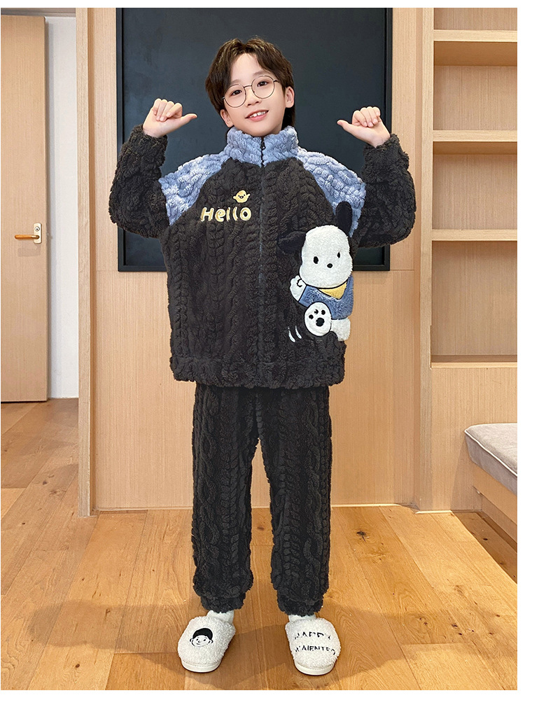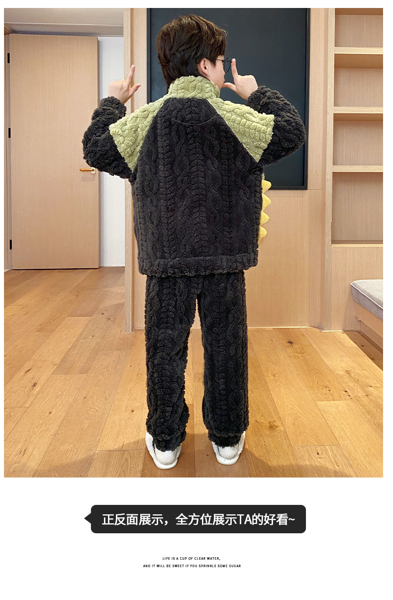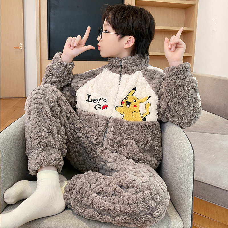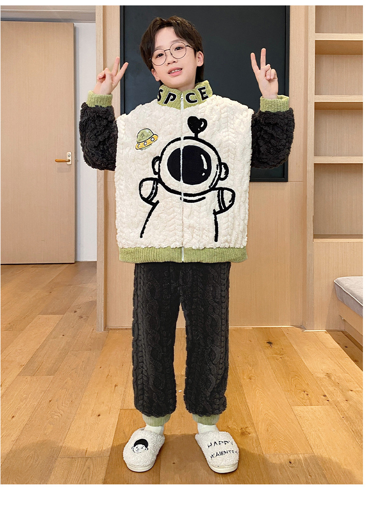 어린이 잠옷 가을과 겨울 플란넬 산호 소년 세트 지퍼 기모 어린이를위한 두꺼운 겨울 스타일