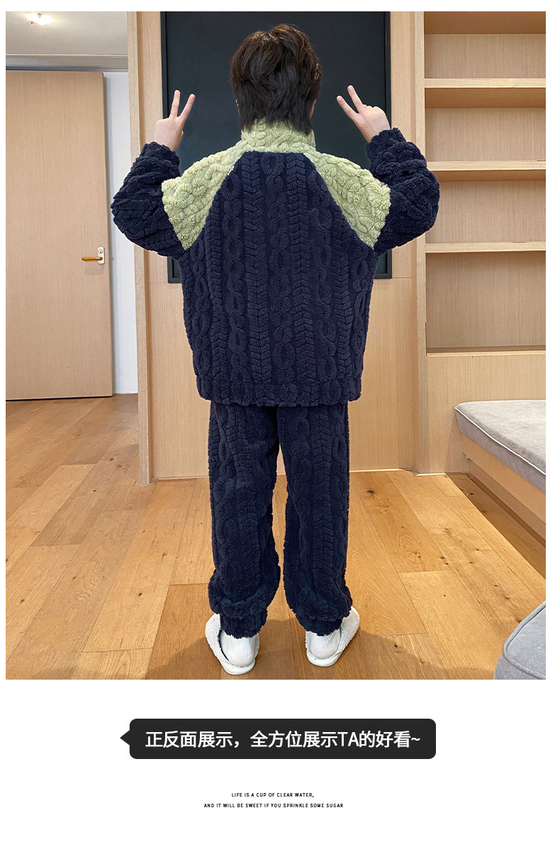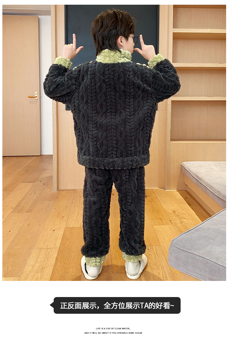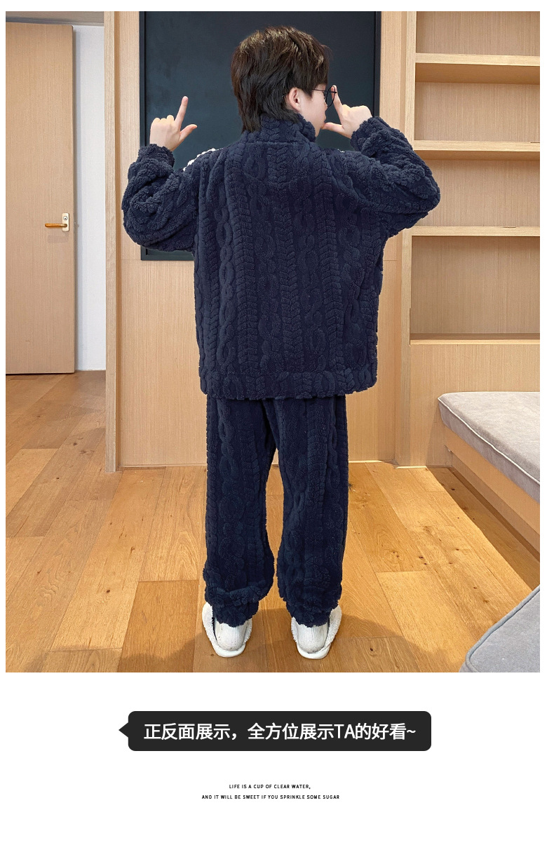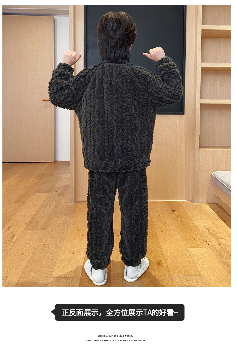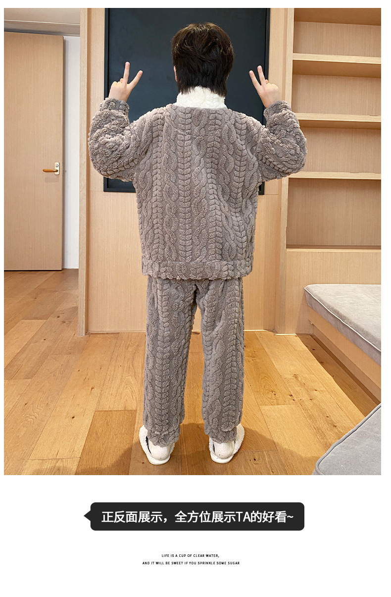 어린이 잠옷 가을과 겨울 플란넬 산호 소년 세트 지퍼 기모 어린이를위한 두꺼운 겨울 스타일