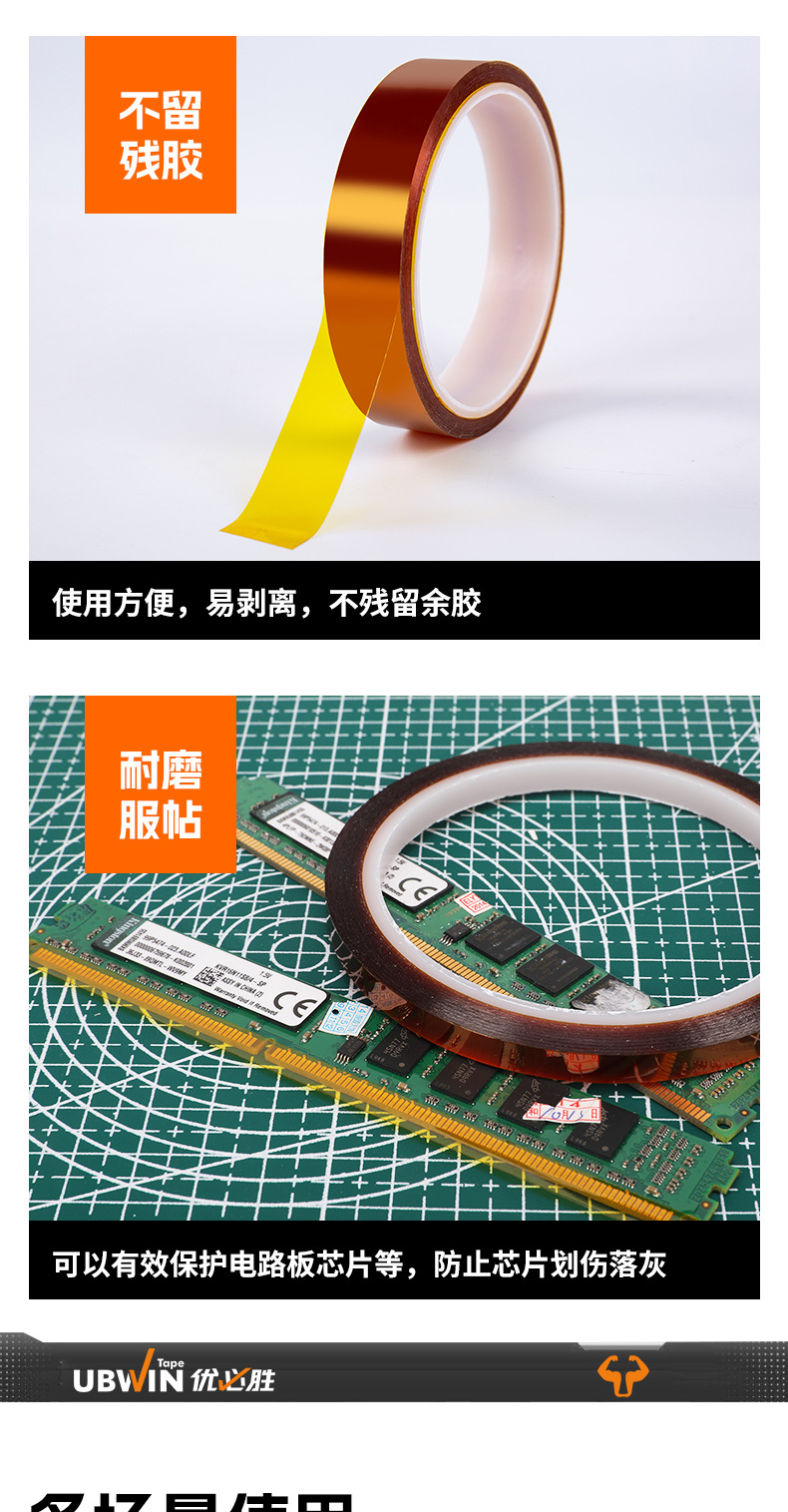 고온 저항하는 금 손가락 양면 테이프 PI 폴리이미드 호박색 내열 절연 고온 테이프 공장 도매스토어 가기