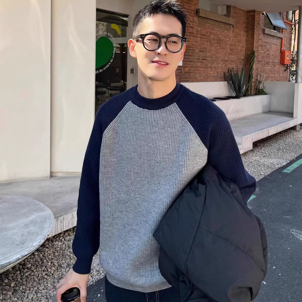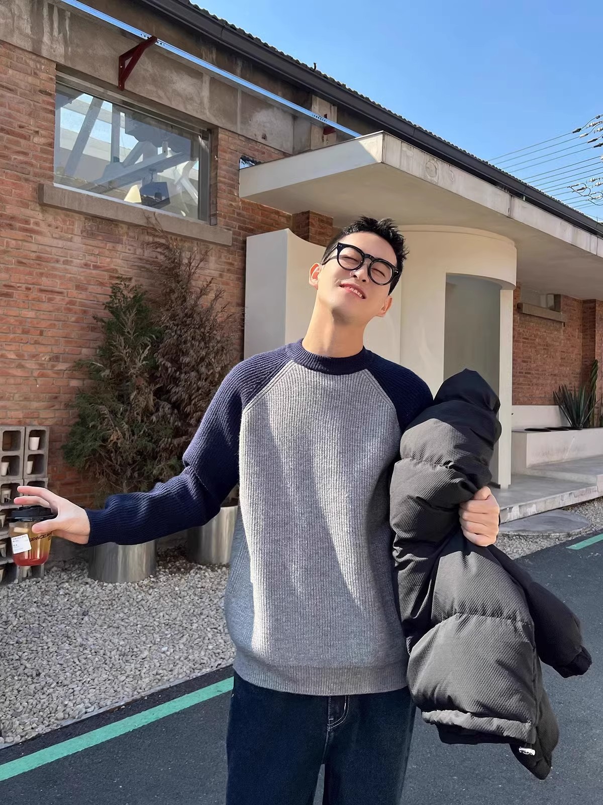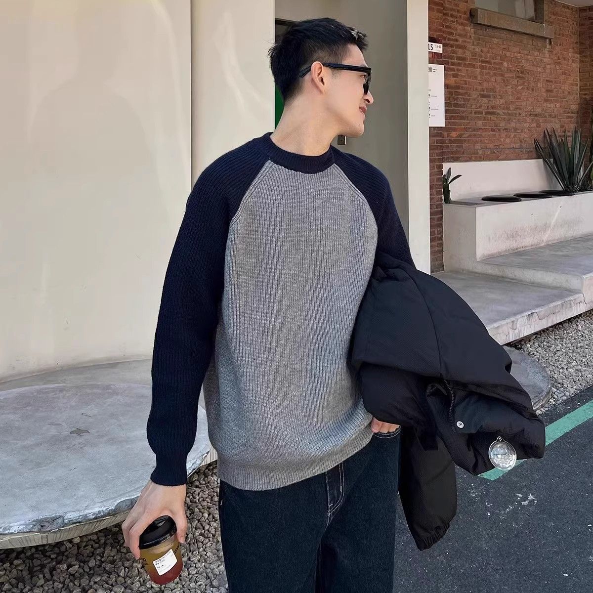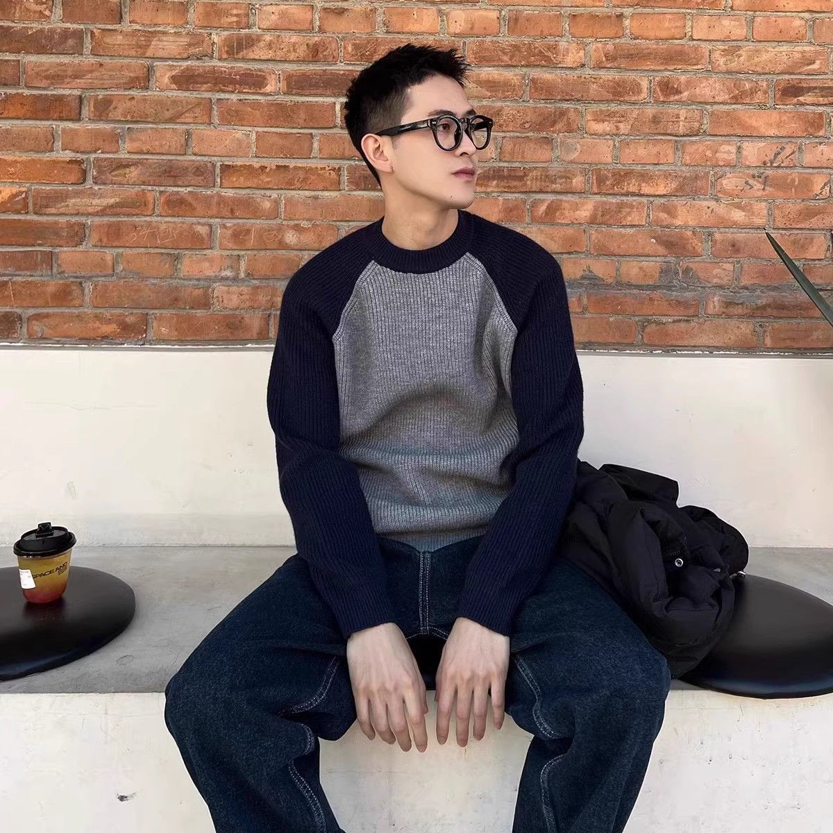 Colorblock Raglan 슬리브 스웨터 남자의 봄과 가을 새로운 캐주얼 라운드 넥 얇은베이스 스웨터 탑 트렌디 브랜드스토어 가기