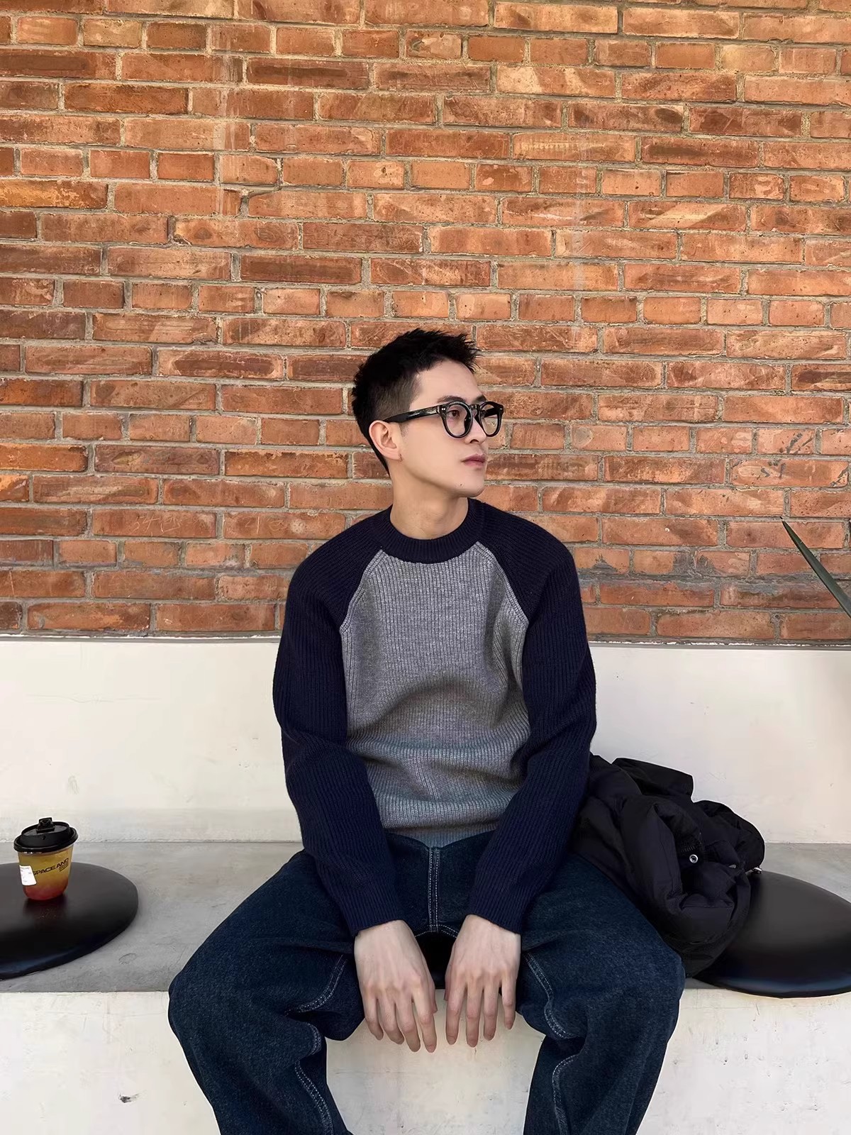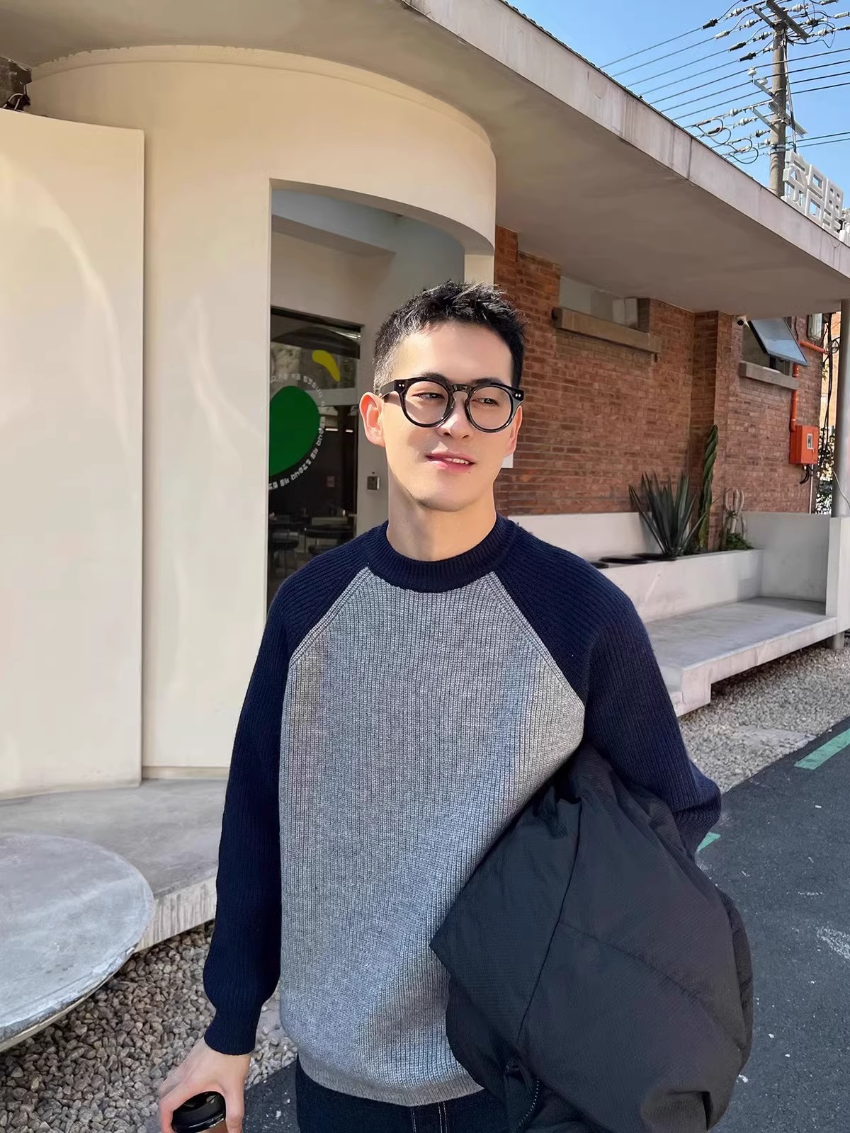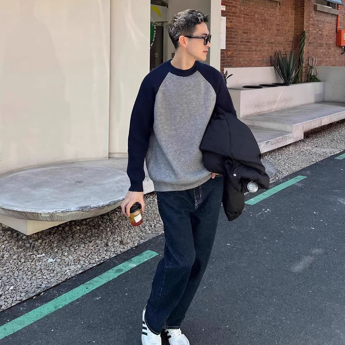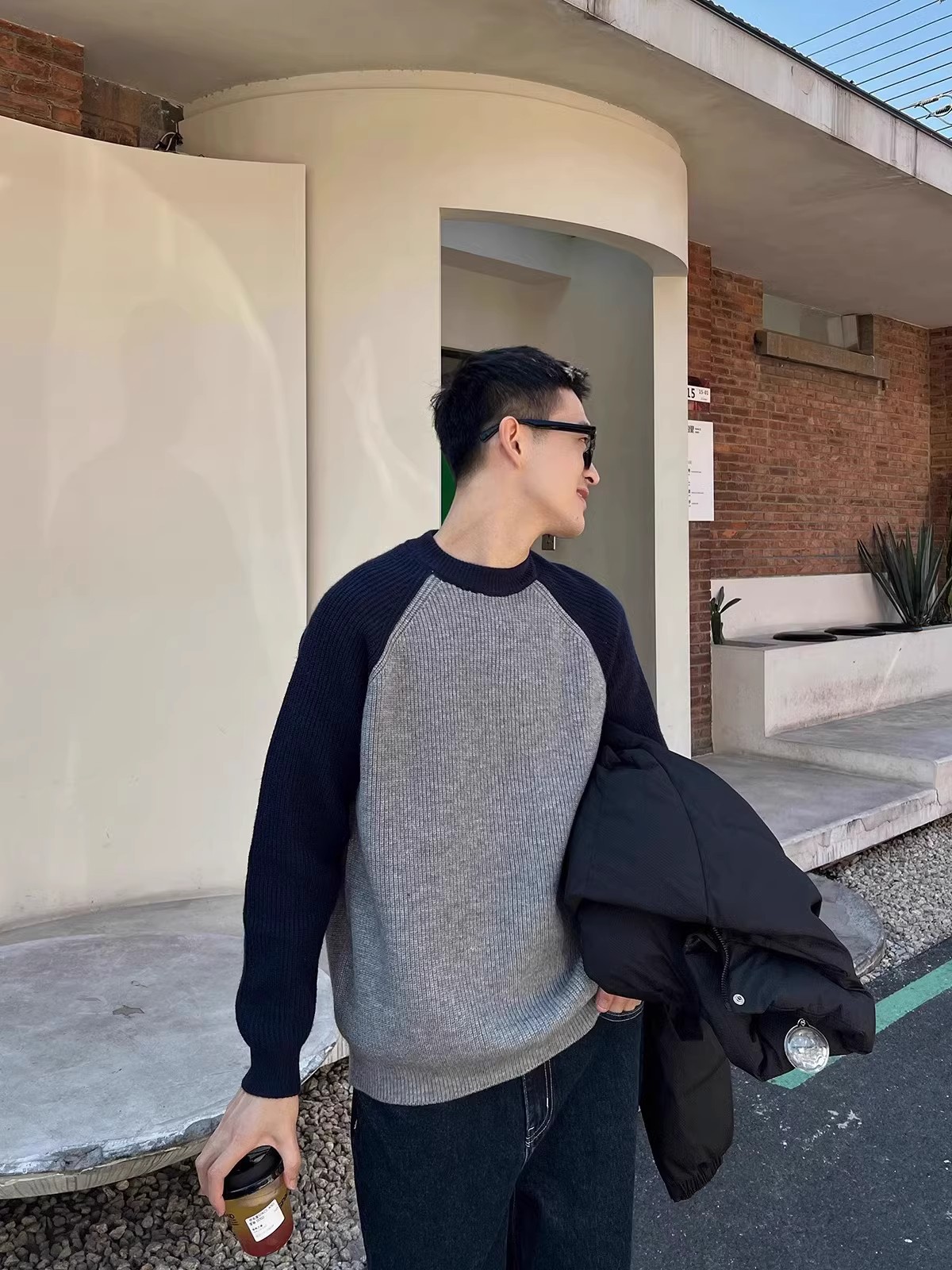 Colorblock Raglan 슬리브 스웨터 남자의 봄과 가을 새로운 캐주얼 라운드 넥 얇은베이스 스웨터 탑 트렌디 브랜드스토어 가기