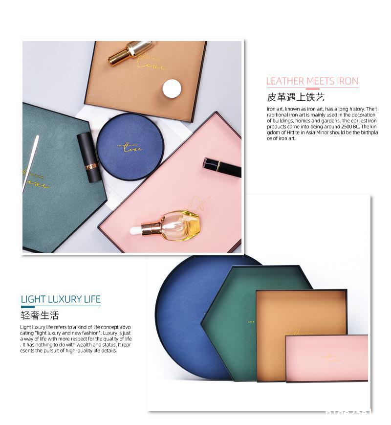 모란 디 컬러 트레이 기하학적 가죽 패드 금속 철 저장 트레이 노르딕 화장품 잡화 마무리스토어 가기