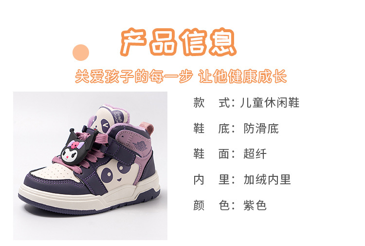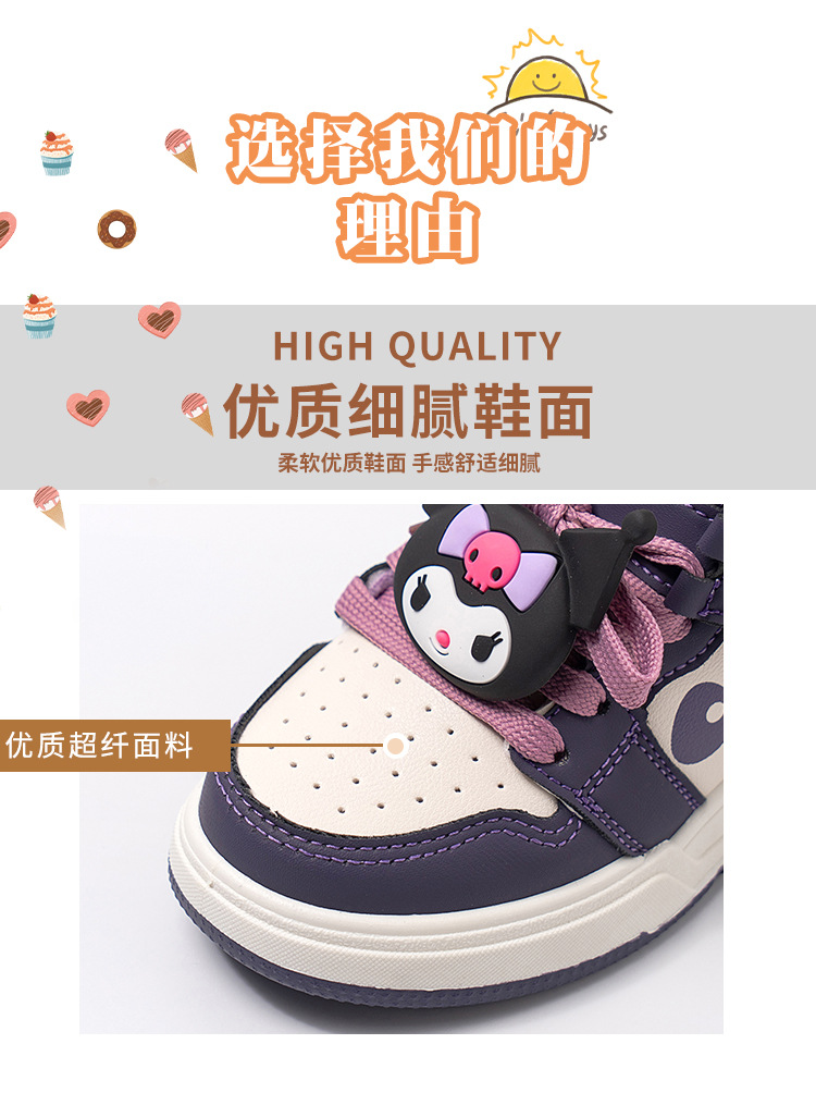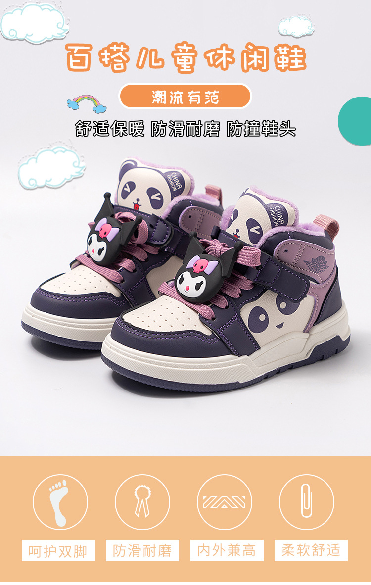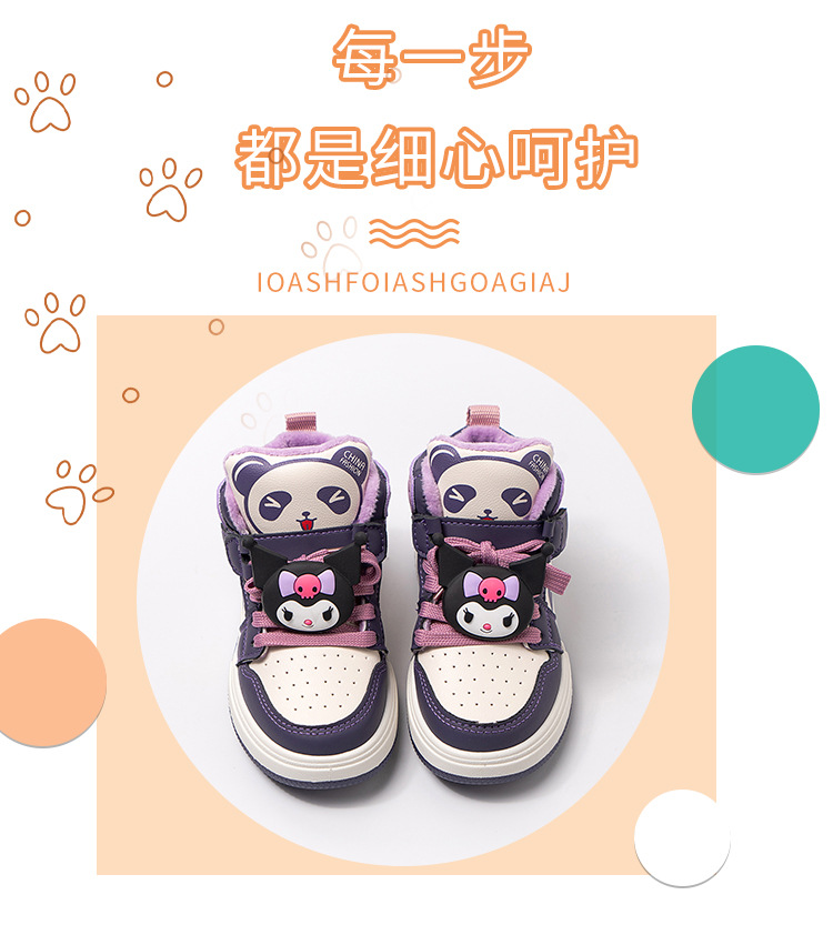 여아용 미드탑 코튼 쿠로미 운동화 2024 겨울 신작 레이스업 미드사이즈 아동용 미끄럼 방지 따뜻한 면화 트렌디스토어 가기