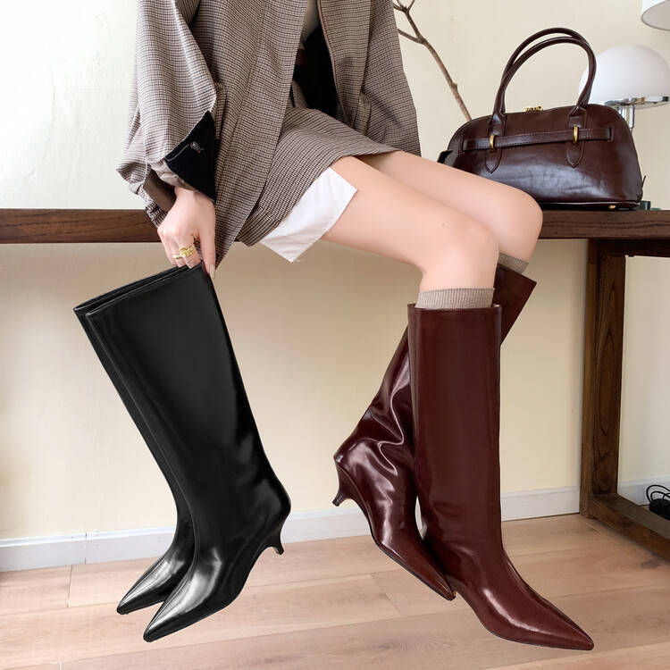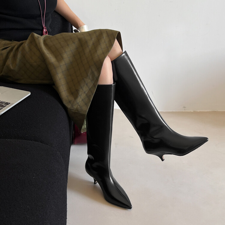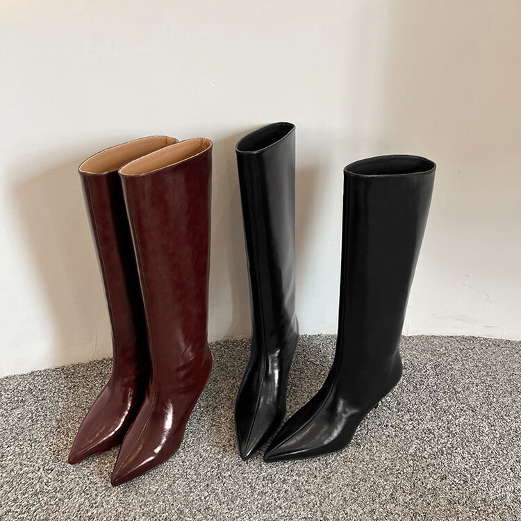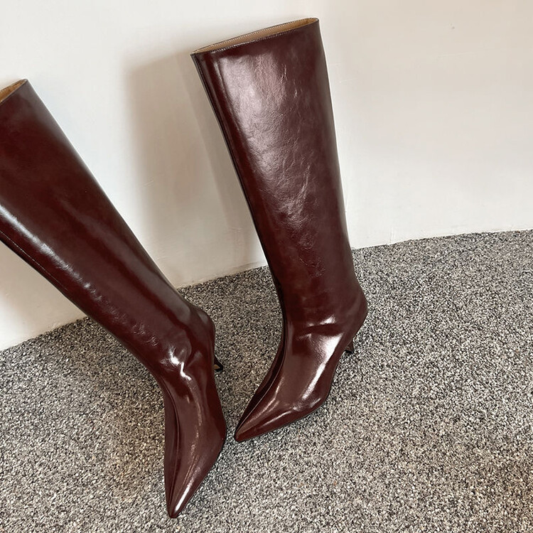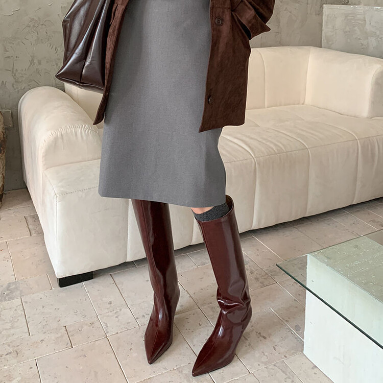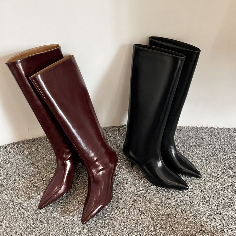 전체 가죽 높은 부츠 여성이지만 무릎 슬리브 부츠 겨울 새로운 뾰족한 미들 뒤꿈치 무릎 높은 부츠 여성용 부츠스토어 가기