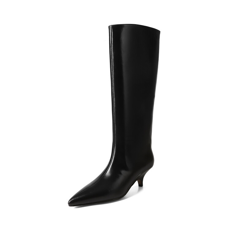 전체 가죽 높은 부츠 여성이지만 무릎 슬리브 부츠 겨울 새로운 뾰족한 미들 뒤꿈치 무릎 높은 부츠 여성용 부츠