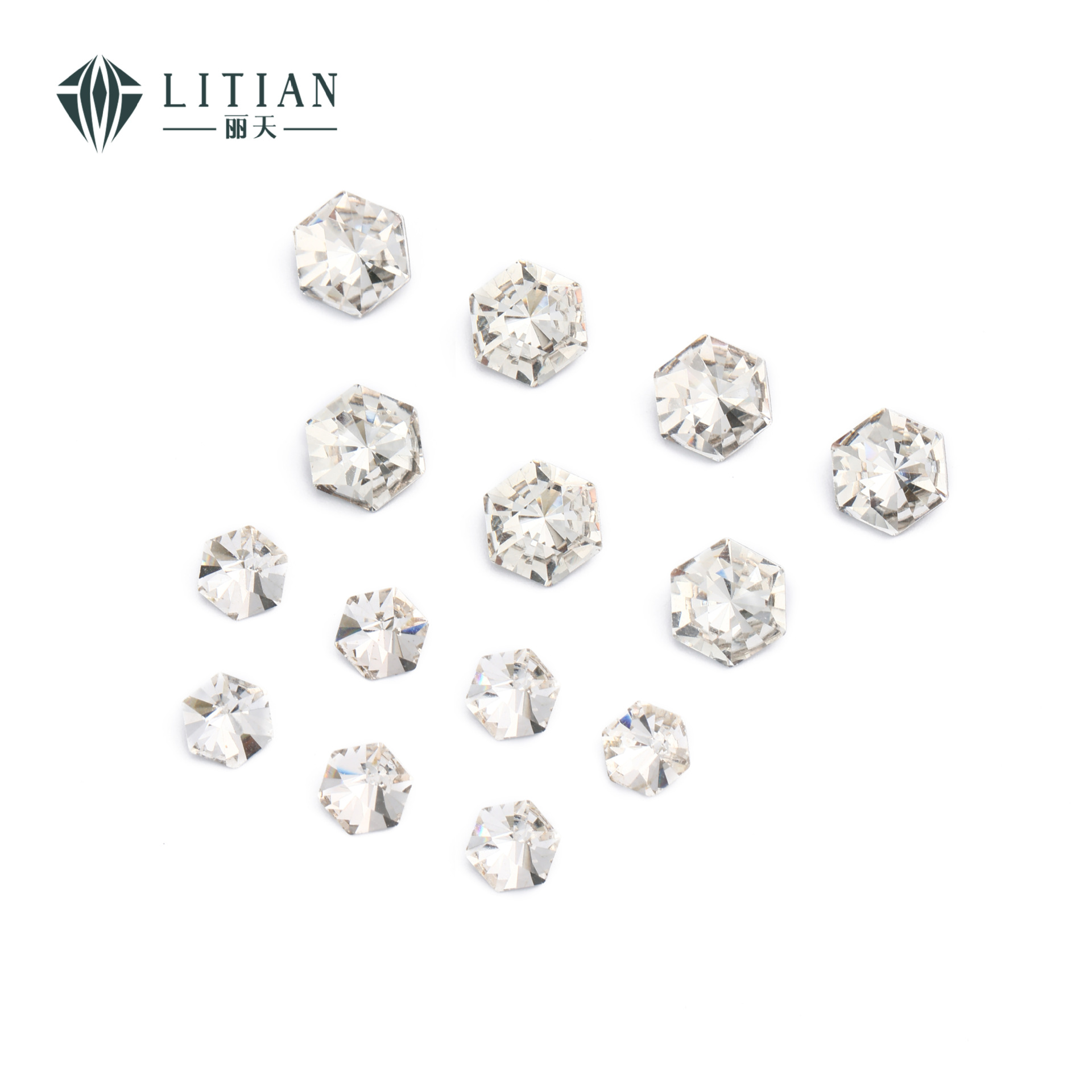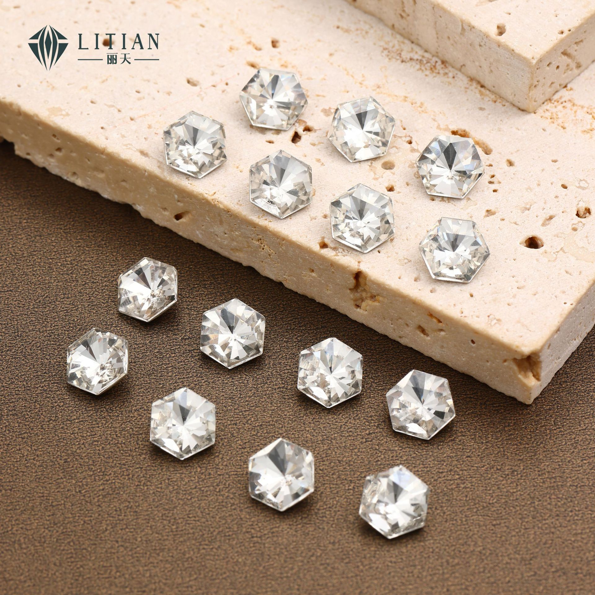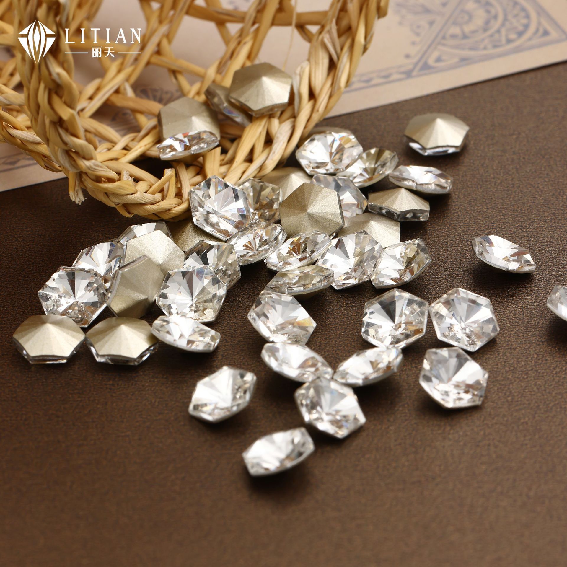 K9 뾰족한 바닥 모양의 유리 육각형 다이아몬드 웨딩 쥬얼리 크리스탈 의류 액세서리 진공 도금 바닥 크리스탈 네일 드릴스토어 가기