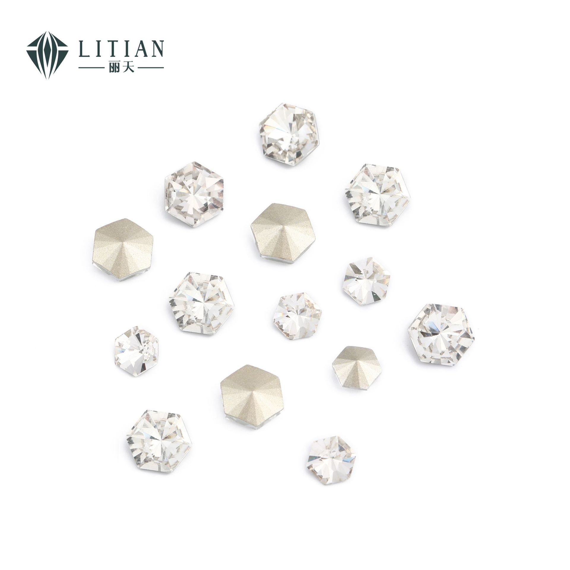 K9 뾰족한 바닥 모양의 유리 육각형 다이아몬드 웨딩 쥬얼리 크리스탈 의류 액세서리 진공 도금 바닥 크리스탈 네일 드릴