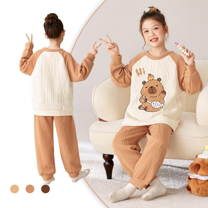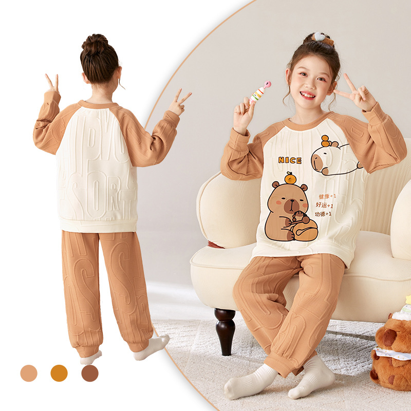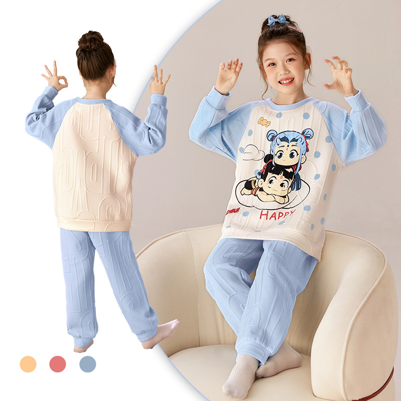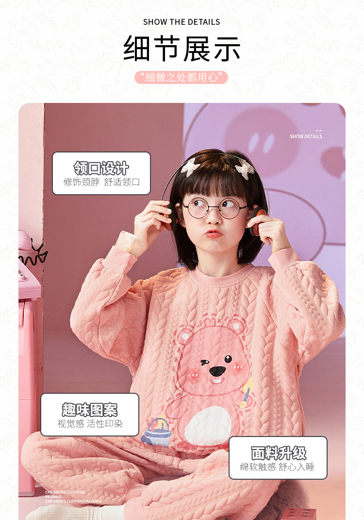 여아 잠옷 긴팔 2025 가을 겨울 에어 코튼 레이어 두꺼운 따뜻한 부모-자녀 귀여운 중대형 아동복스토어 가기