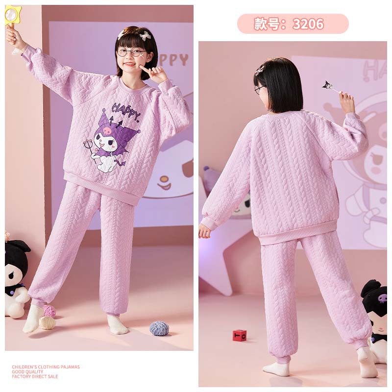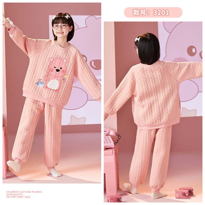 여아 잠옷 긴팔 2025 가을 겨울 에어 코튼 레이어 두꺼운 따뜻한 부모-자녀 귀여운 중대형 아동복