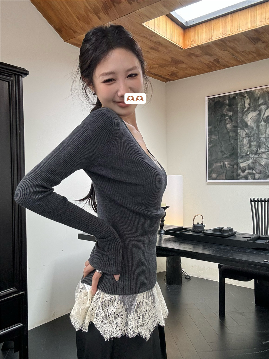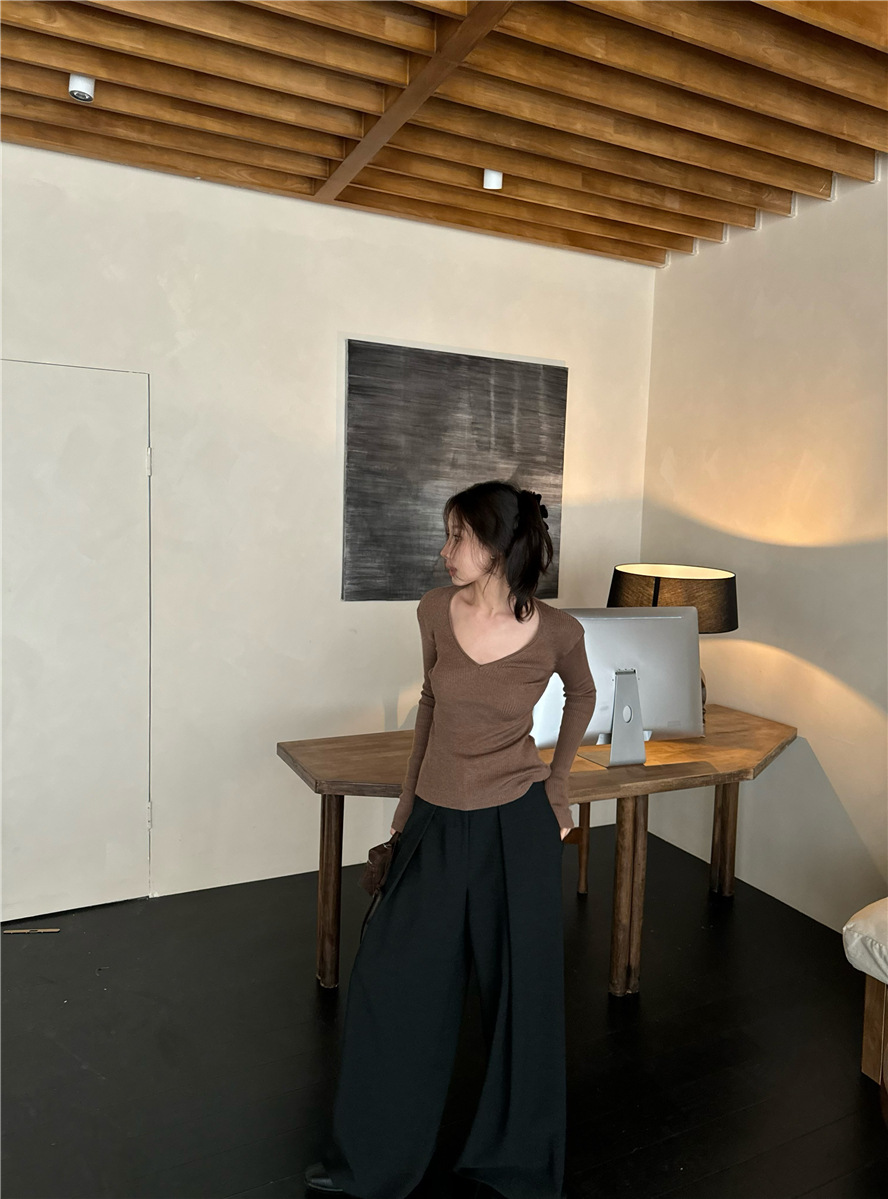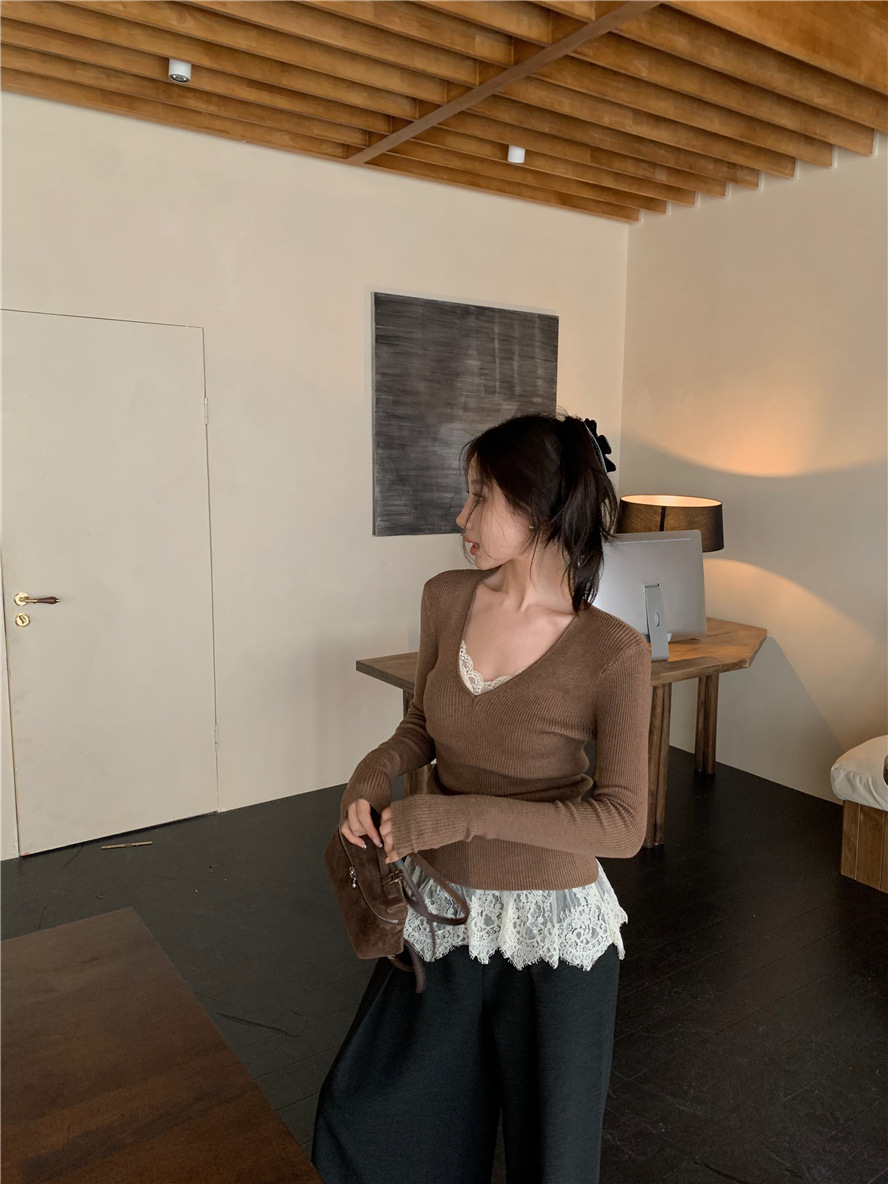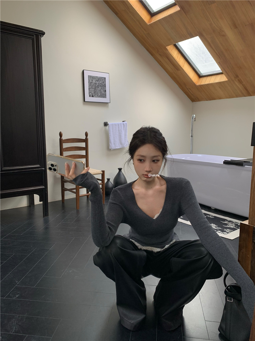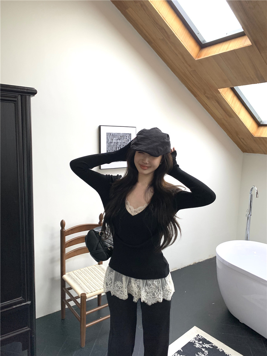 한국 스타일 가을 상의, 우아한 브이넥 긴팔 스웨터, 슬림핏, 다용도 베이스 레이어, 여성용 이너웨어스토어 가기
