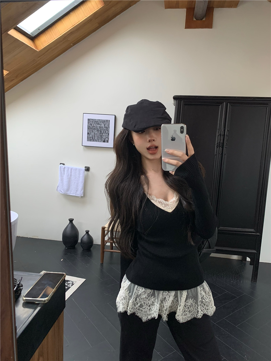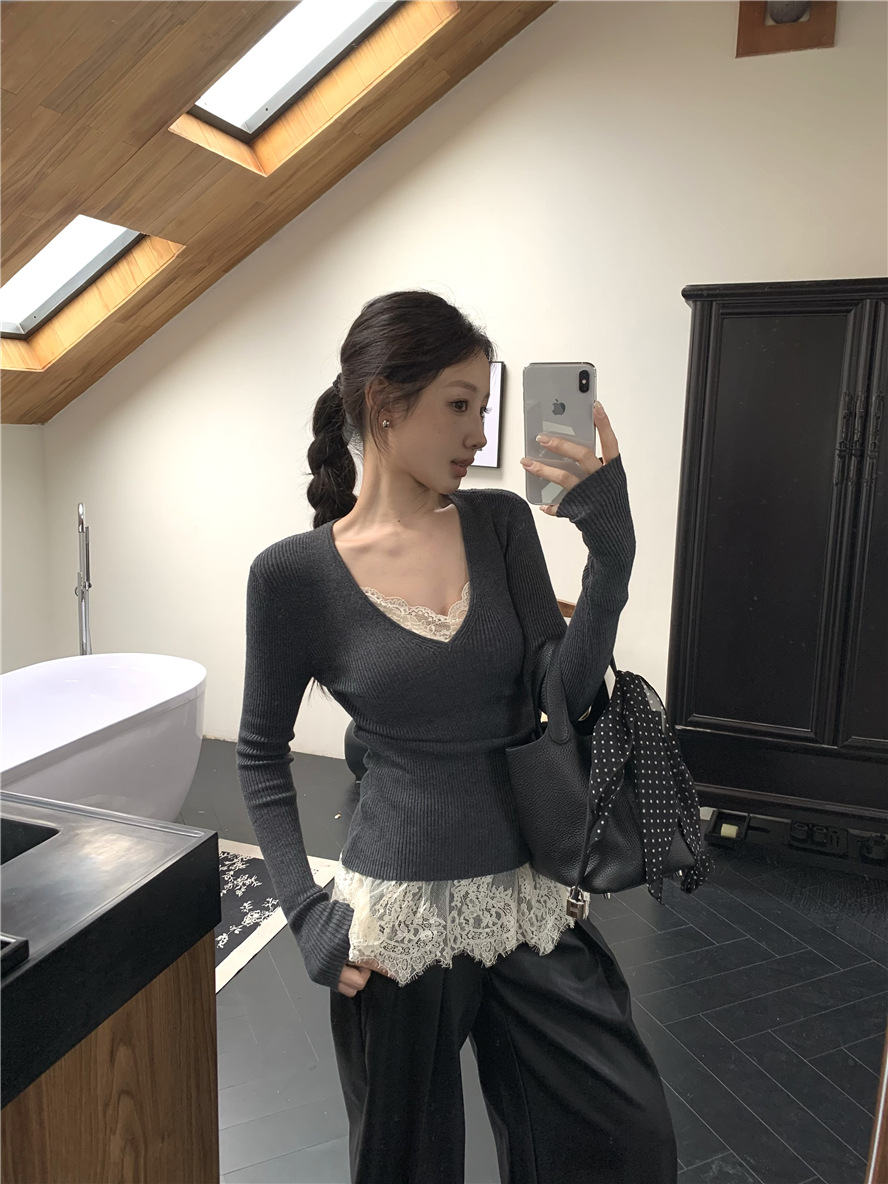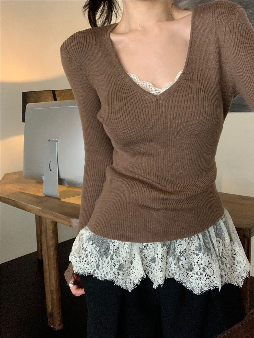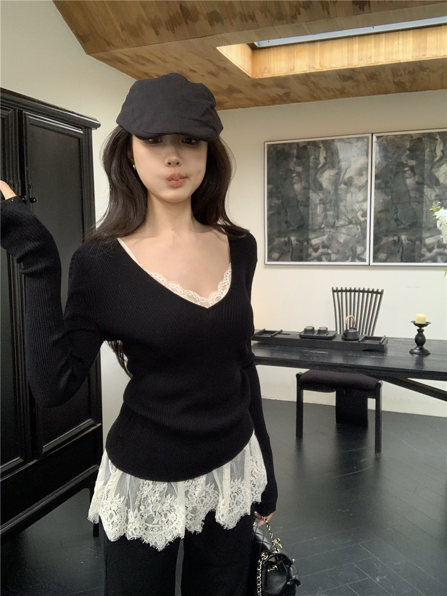 한국 스타일 가을 상의, 우아한 브이넥 긴팔 스웨터, 슬림핏, 다용도 베이스 레이어, 여성용 이너웨어스토어 가기