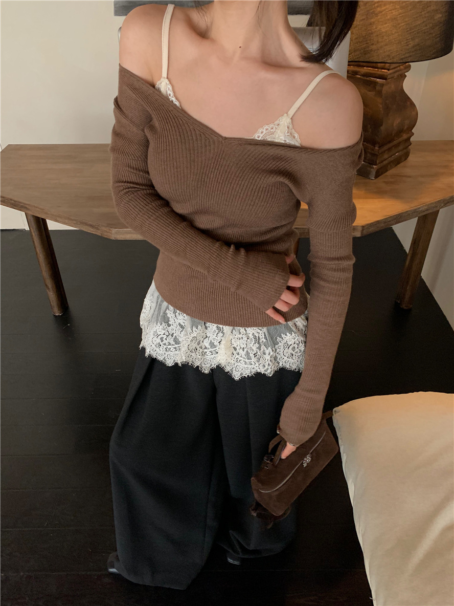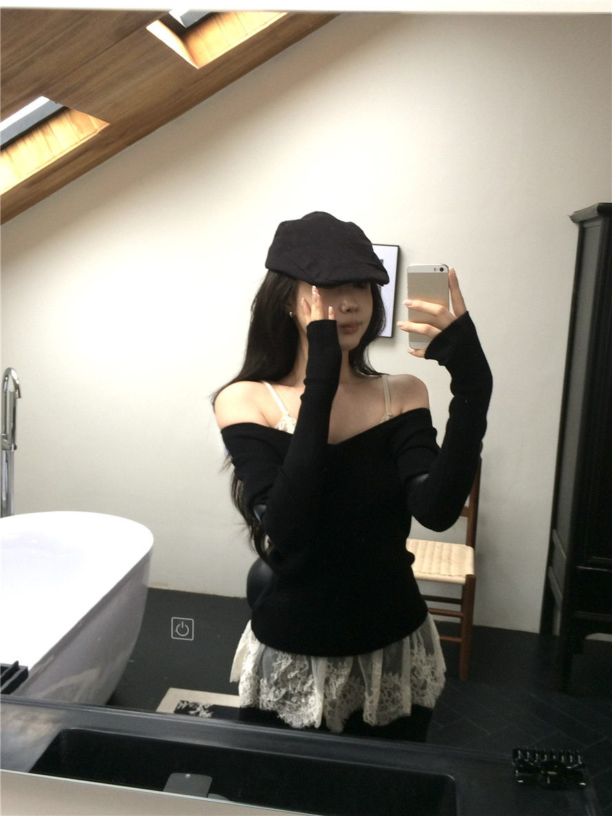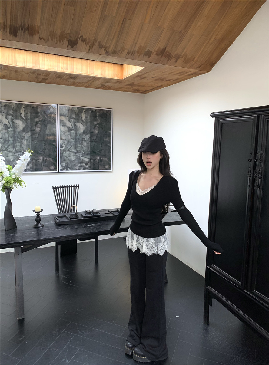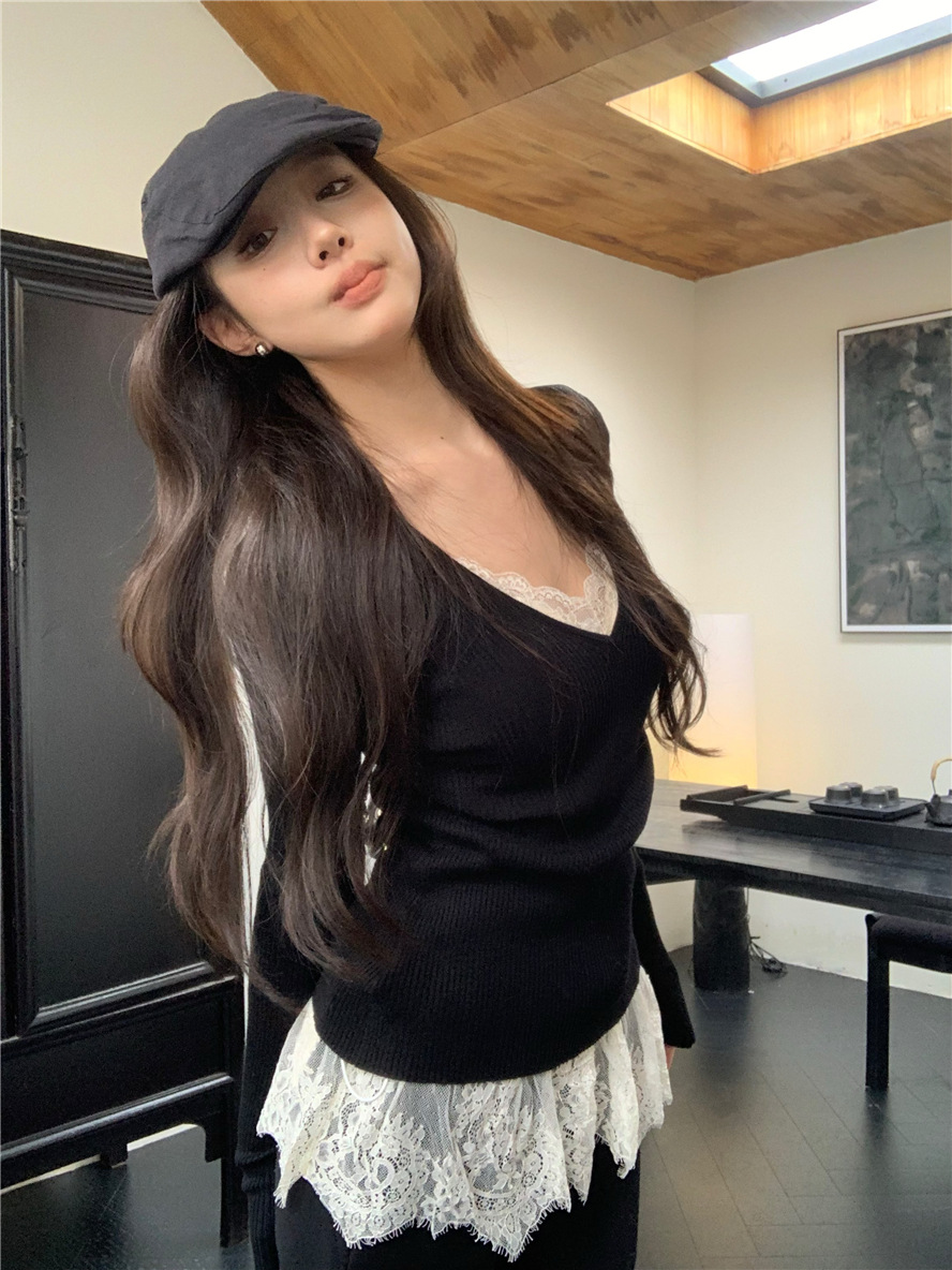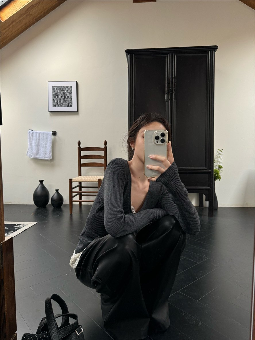 한국 스타일 가을 상의, 우아한 브이넥 긴팔 스웨터, 슬림핏, 다용도 베이스 레이어, 여성용 이너웨어스토어 가기