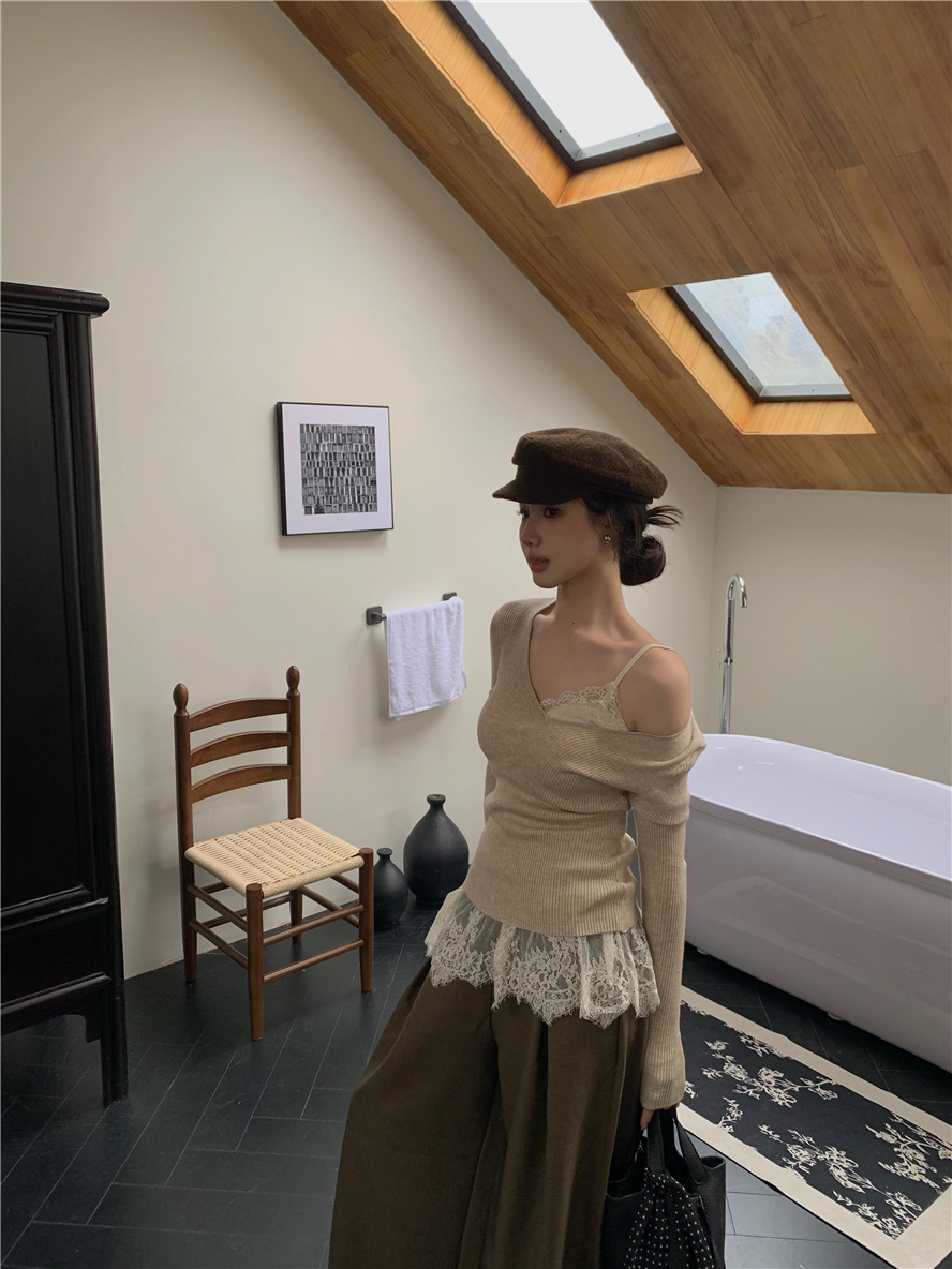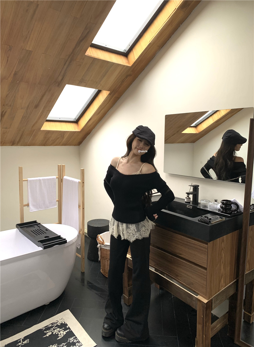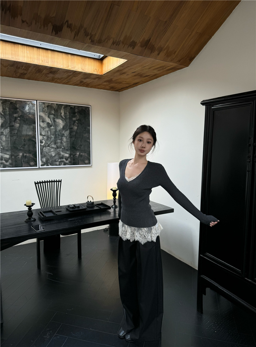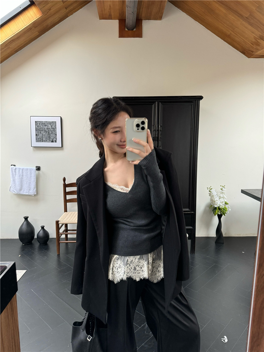 한국 스타일 가을 상의, 우아한 브이넥 긴팔 스웨터, 슬림핏, 다용도 베이스 레이어, 여성용 이너웨어스토어 가기