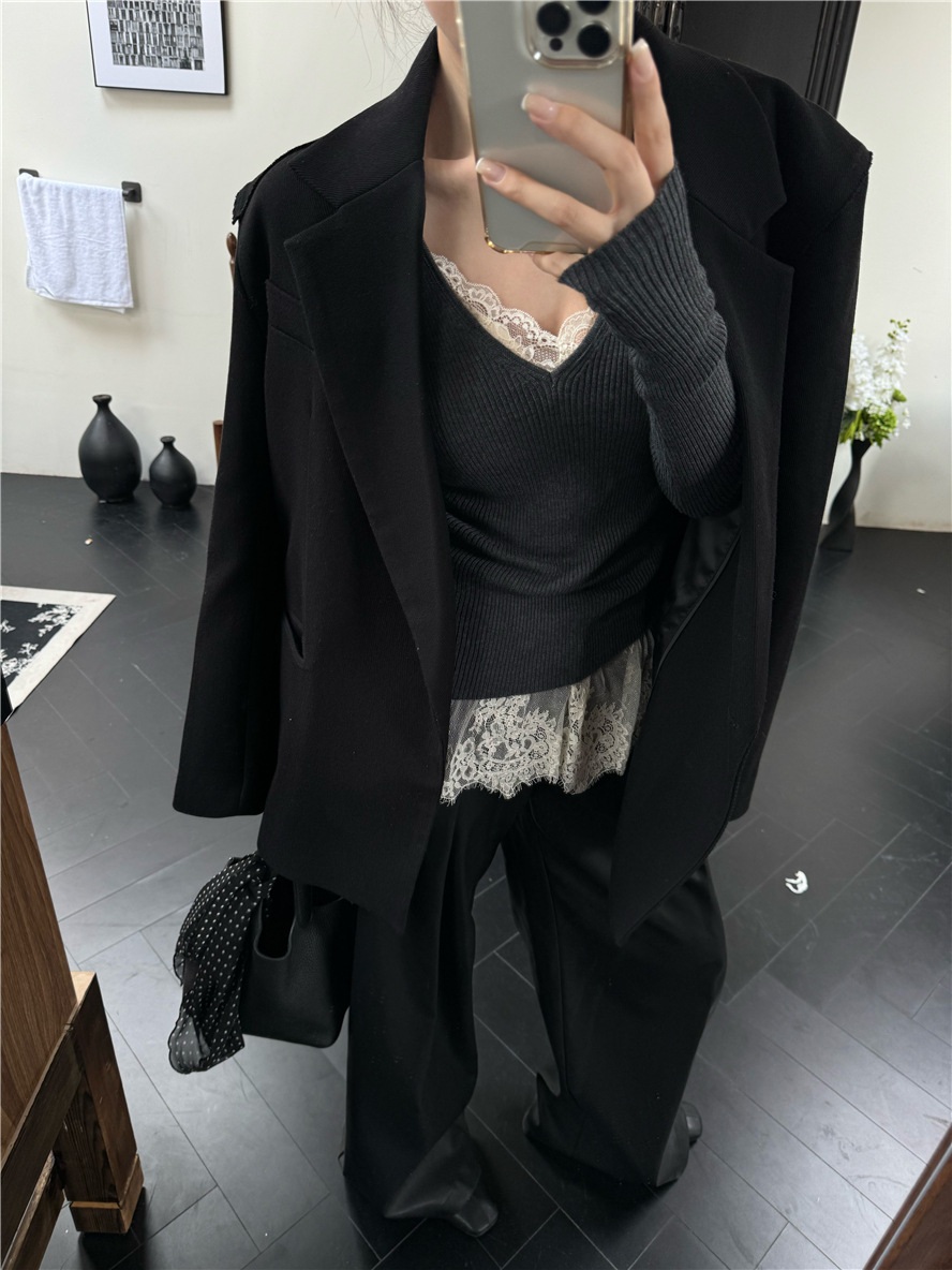 한국 스타일 가을 상의, 우아한 브이넥 긴팔 스웨터, 슬림핏, 다용도 베이스 레이어, 여성용 이너웨어
