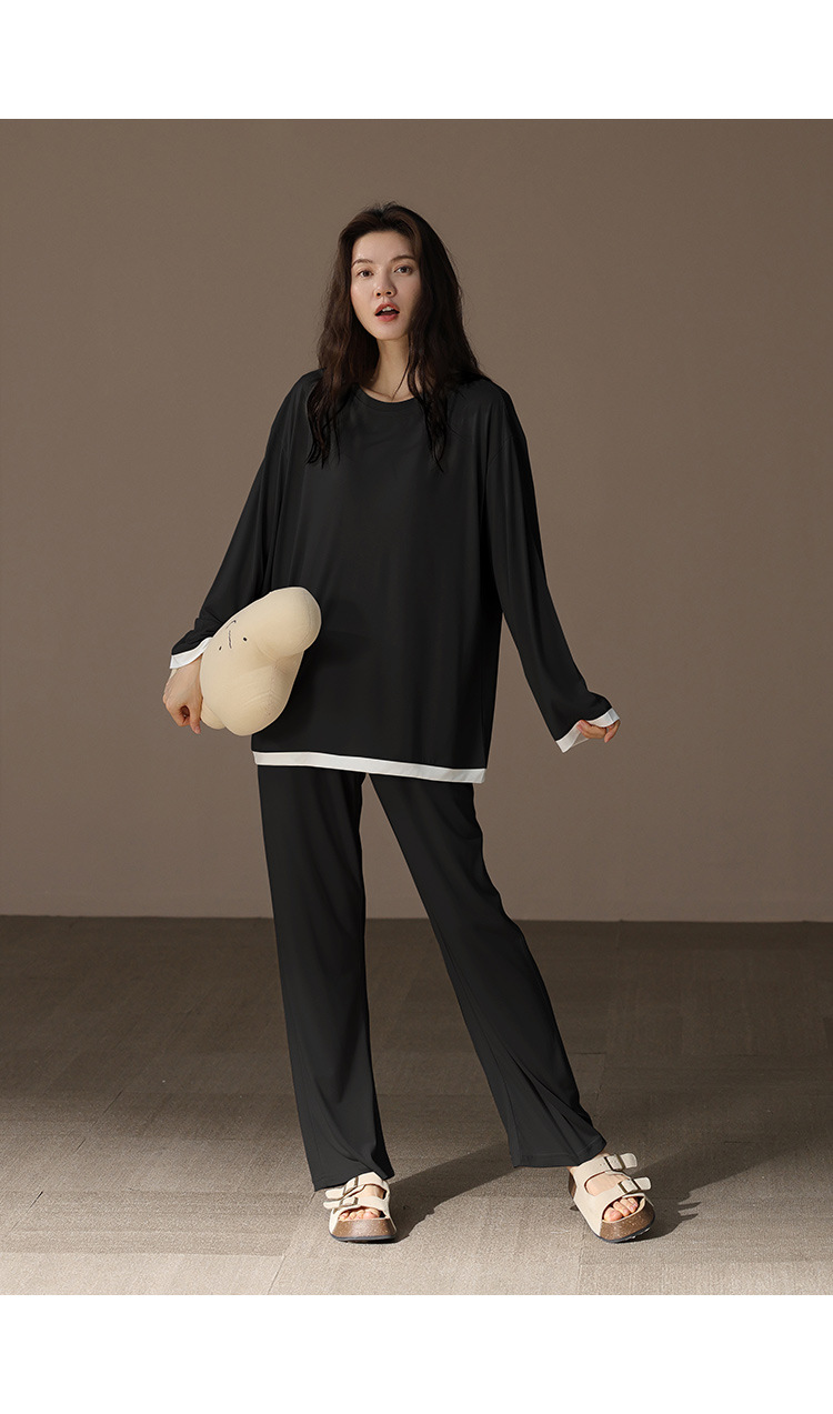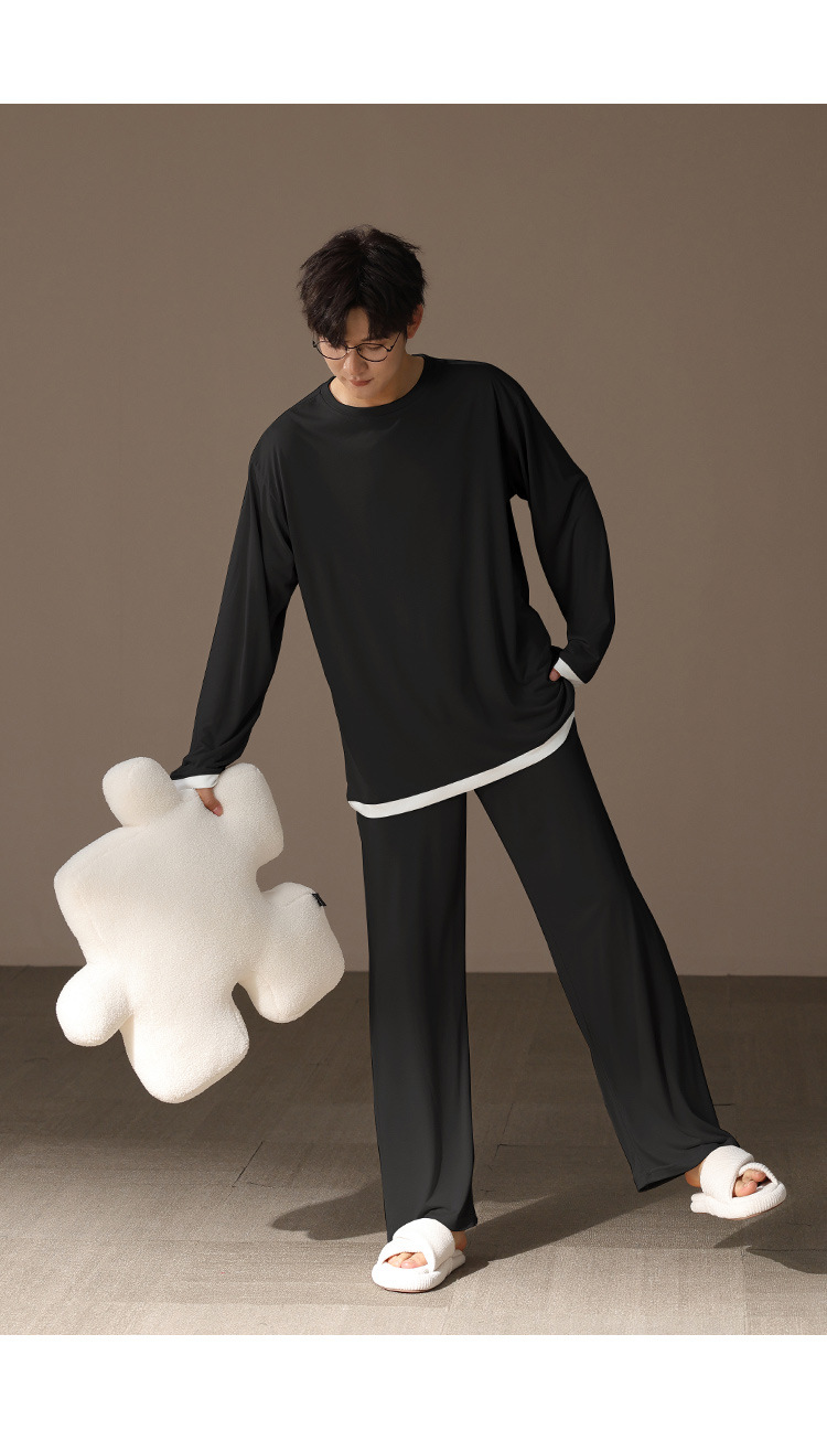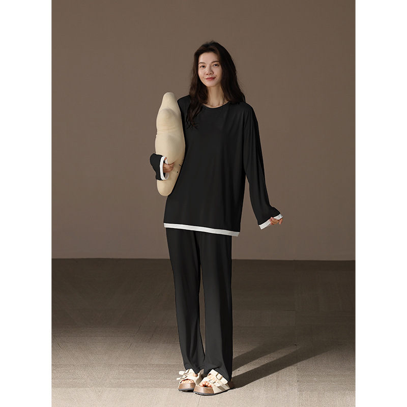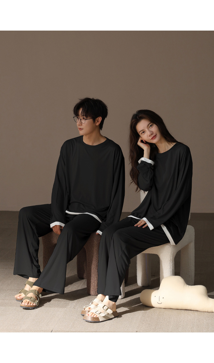 [슈퍼 소프트] 모달 커플 잠옷 봄과 가을 새로운 긴 소매 캐주얼 간단한 남성과 여성의 세트 홈 옷스토어 가기