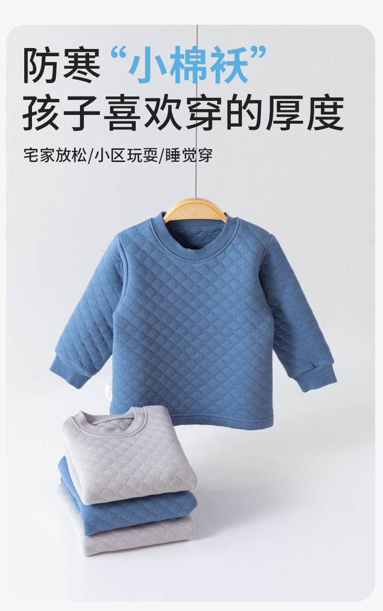 Cuhk 어린이 열 3 층 면 열 속옷 겨울 두꺼운 바닥 남녀 풀오버 라운드 넥 탑스토어 가기
