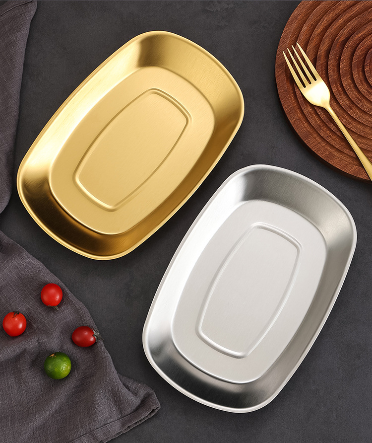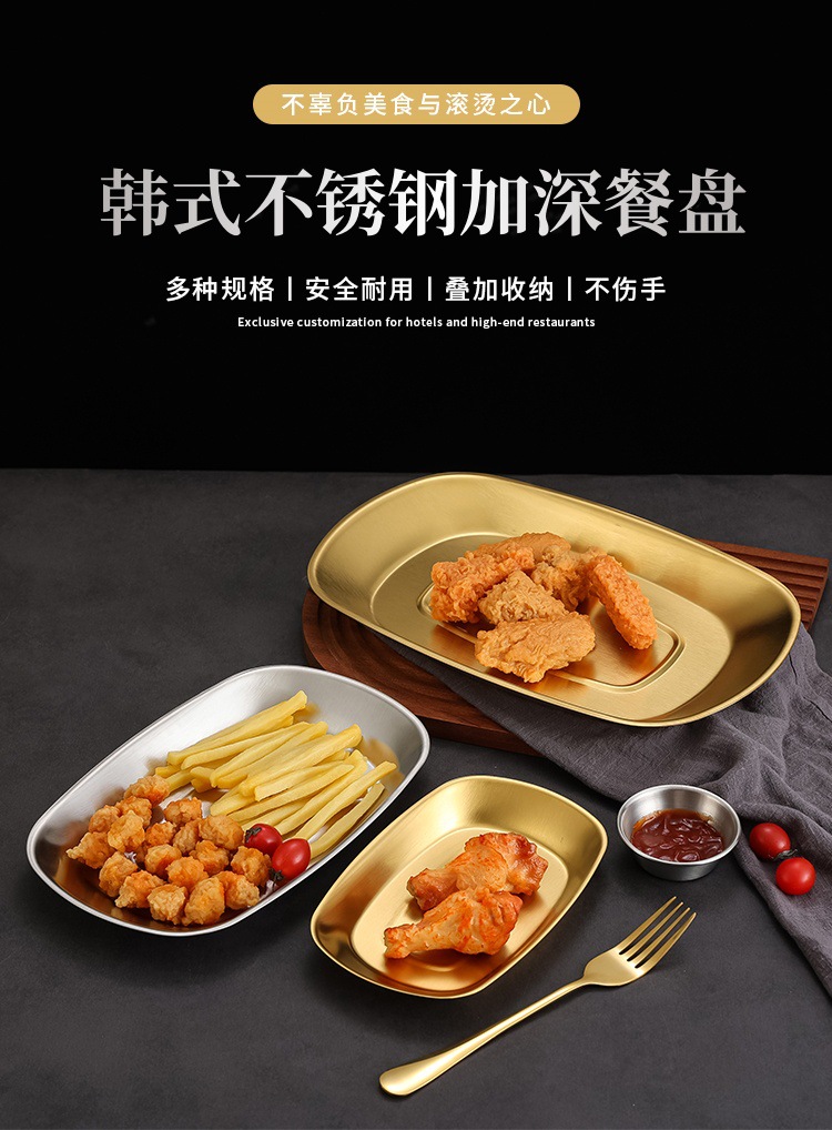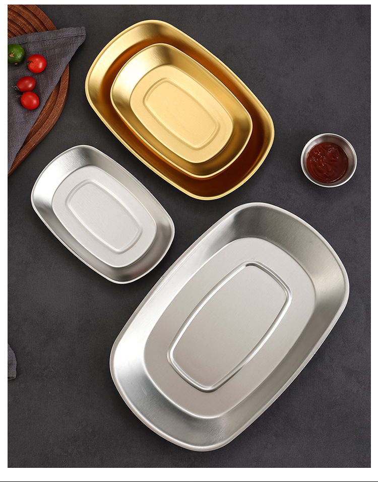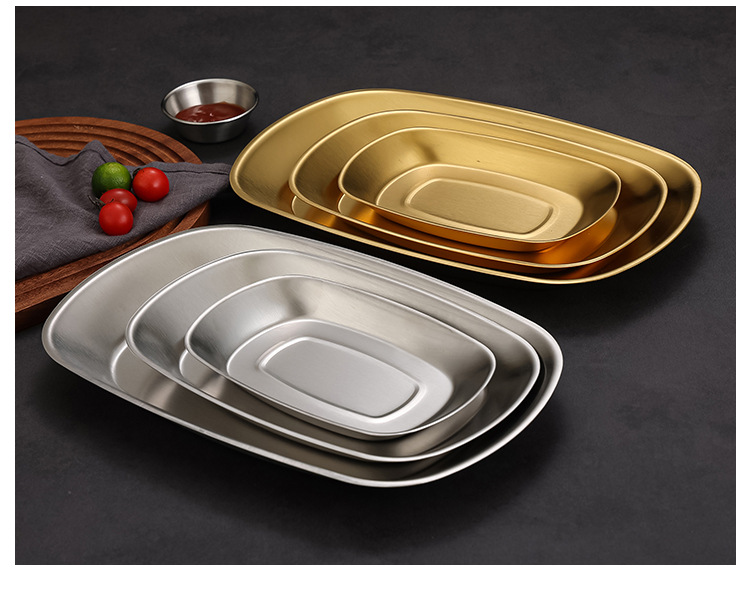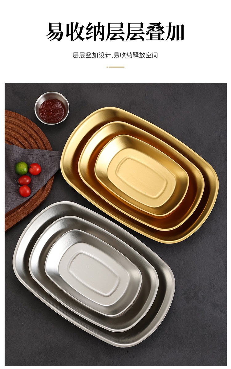 스테인레스 스틸 플레이트 한국식 트레이 가정용 어판 바베큐 식품 준비 플레이트 상업용 쌀 그릇 식사 플레이트 직사각형 심화 플레이트스토어 가기