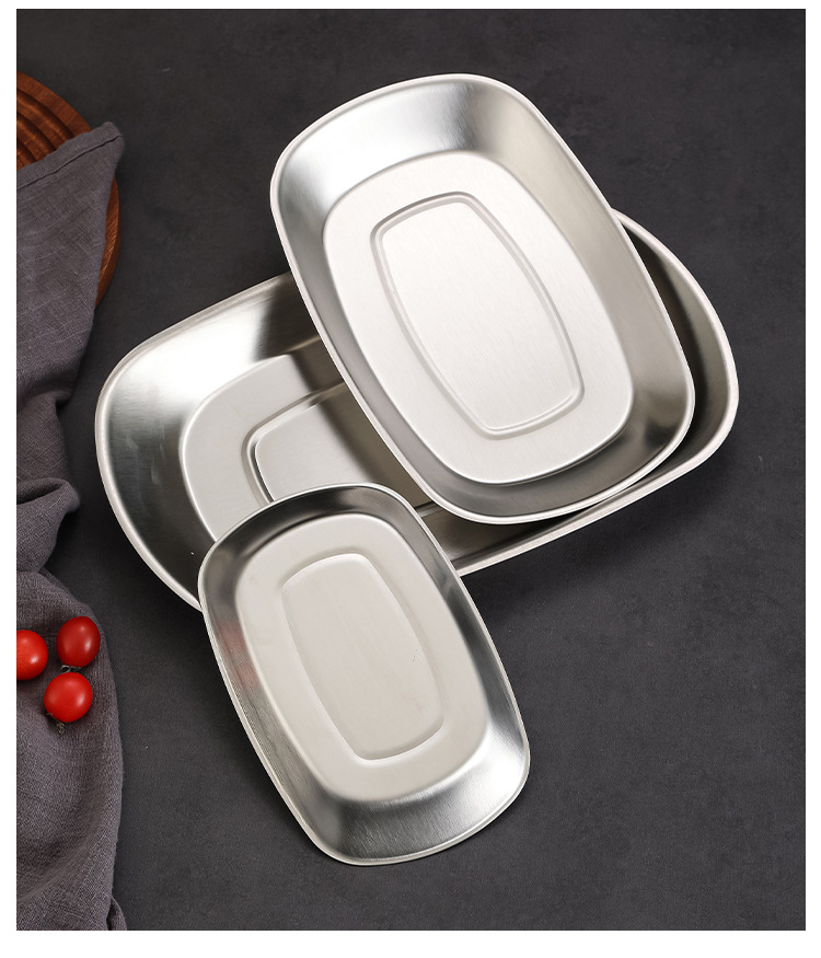 스테인레스 스틸 플레이트 한국식 트레이 가정용 어판 바베큐 식품 준비 플레이트 상업용 쌀 그릇 식사 플레이트 직사각형 심화 플레이트