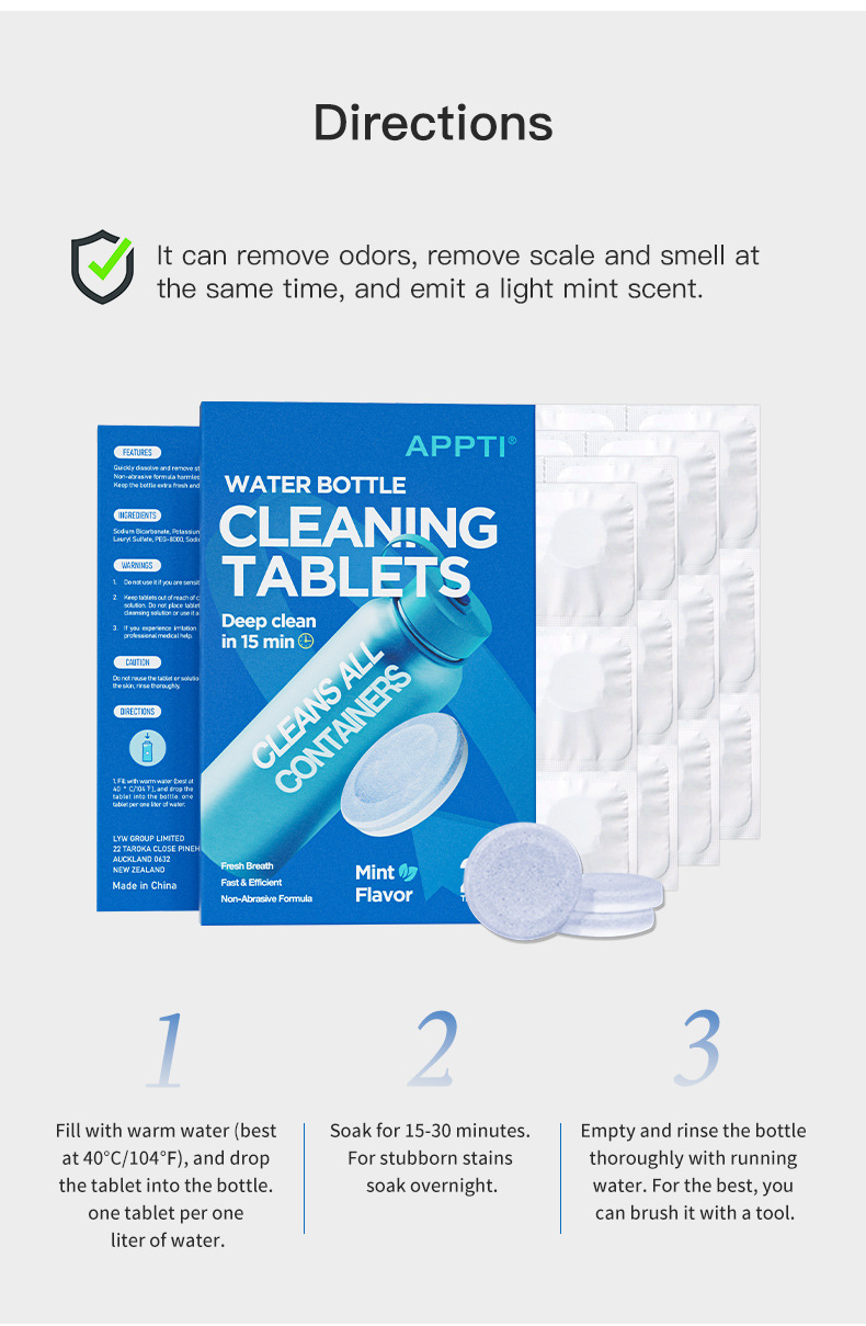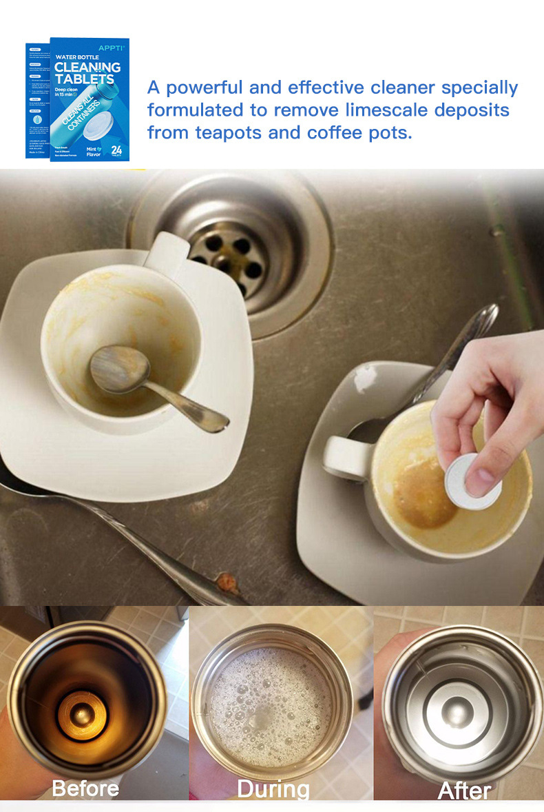 국경 간 주전자 청소 정제 민트 맛 병 탈피 및 얼룩 제거 활성 청소 태블릿 청소 태블릿스토어 가기