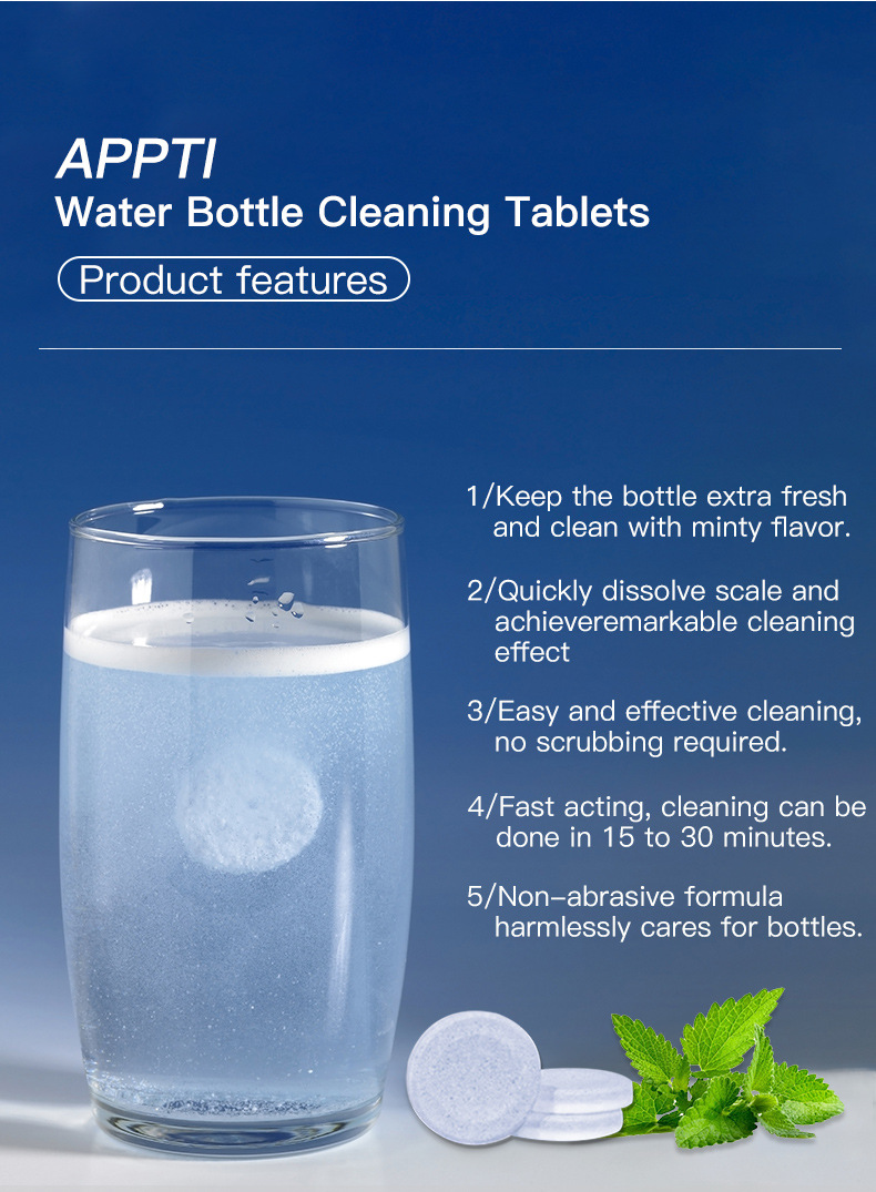 국경 간 주전자 청소 정제 민트 맛 병 탈피 및 얼룩 제거 활성 청소 태블릿 청소 태블릿