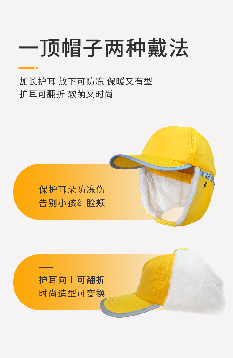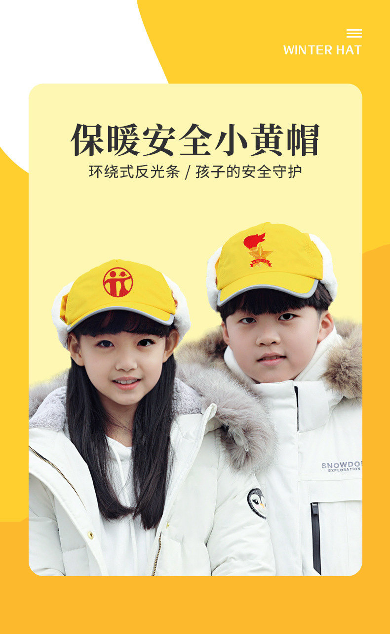 가을 겨울 어린이 모자 맞춤 제작 초등학생 안전 노란색 모자 레이펑 야구 모자 야광 따뜻한 공장 도매