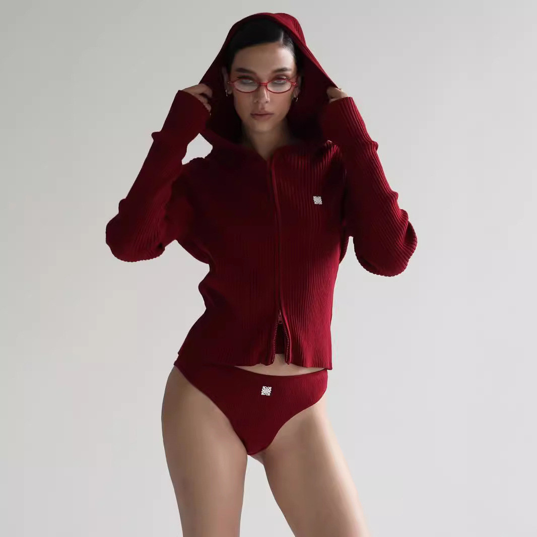 Badblood Red Zipper Hoodie 여성의 뜨거운 소녀 섹시한 패션 긴 소매 니트 스웨터 코트 가을과 겨울 새로운