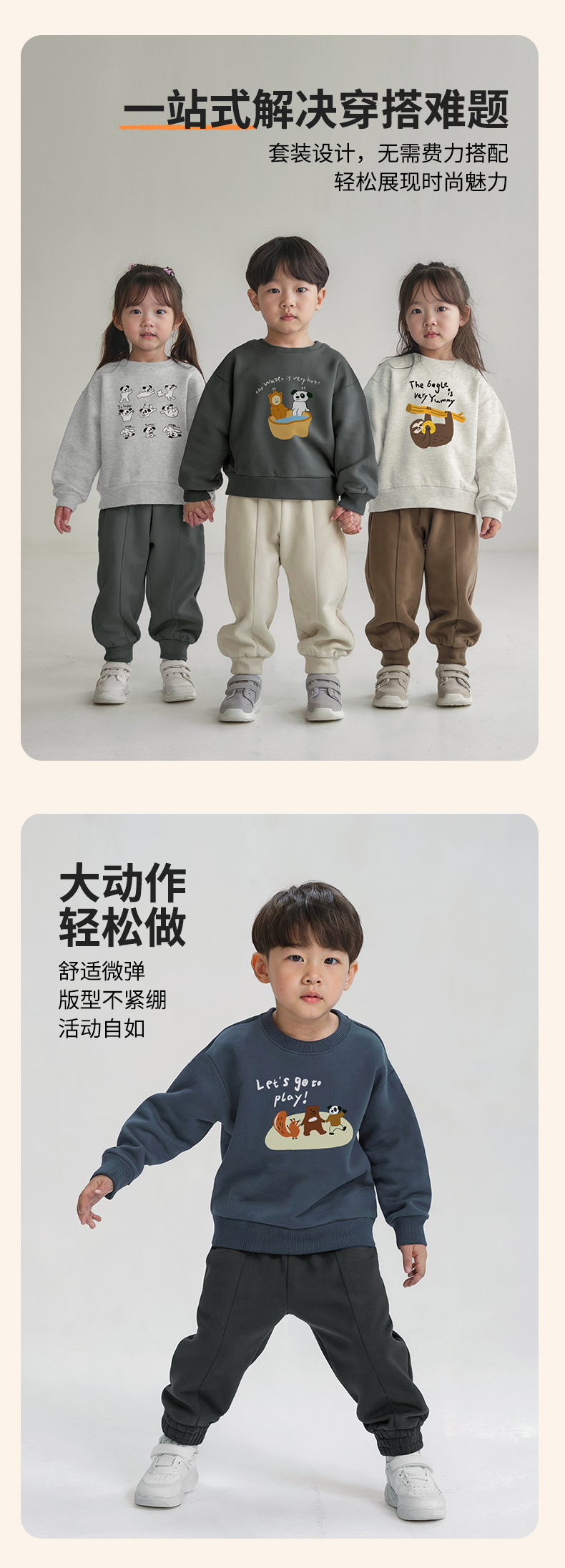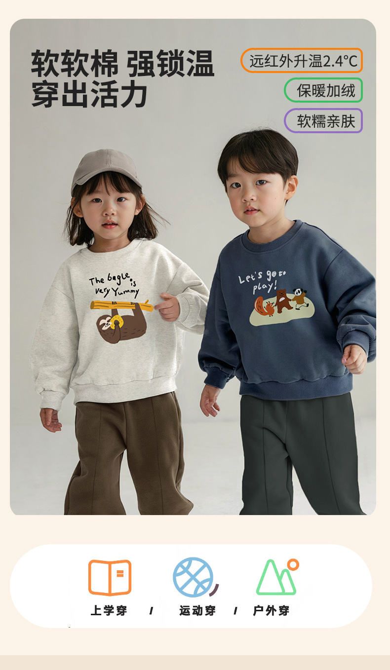 미니 존 가을과 겨울 새로운 어린이 벨벳 세트 투피스 피부 친화적 인 벨벳 따뜻한 스웨터 바지 소년 긴팔 여성스토어 가기