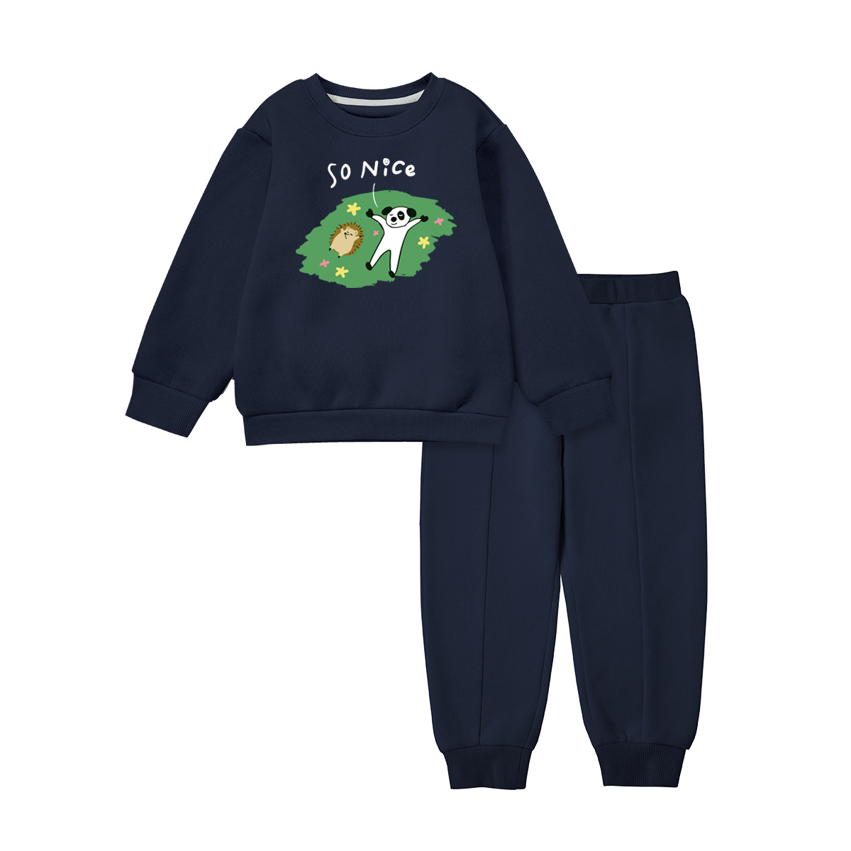 미니 존 가을과 겨울 새로운 어린이 벨벳 세트 투피스 피부 친화적 인 벨벳 따뜻한 스웨터 바지 소년 긴팔 여성
