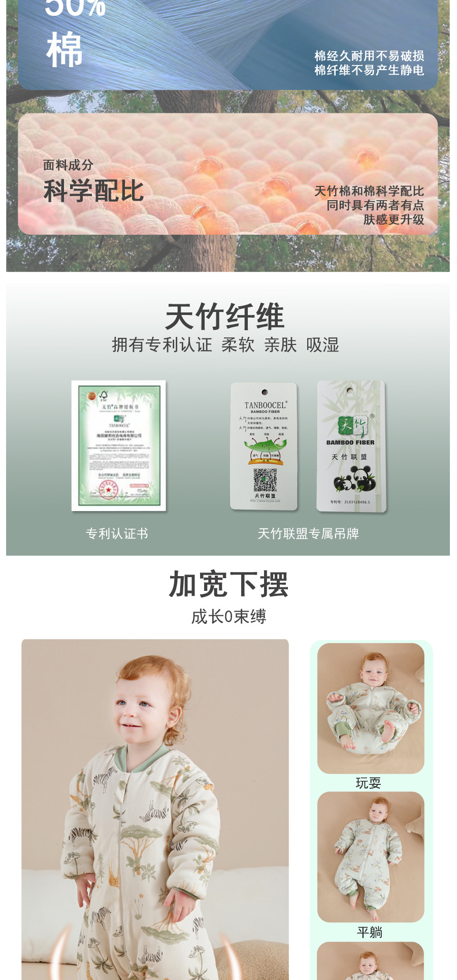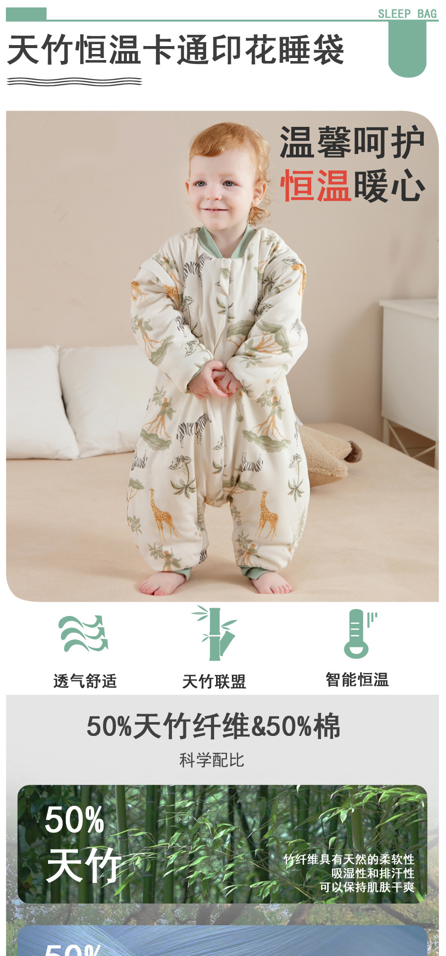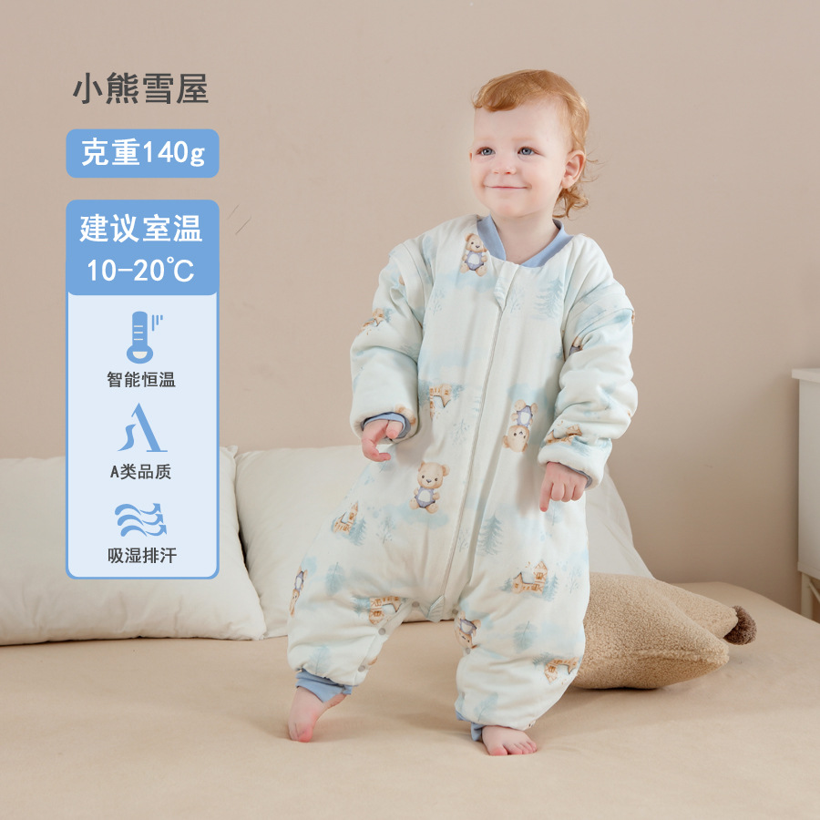 Irijia 140g 어린이 이동식 슬리핑 백 지능형 온도 조절 대나무 섬유 두꺼운 다리 분할 슬리핑 백 킥 방지 겨울스토어 가기