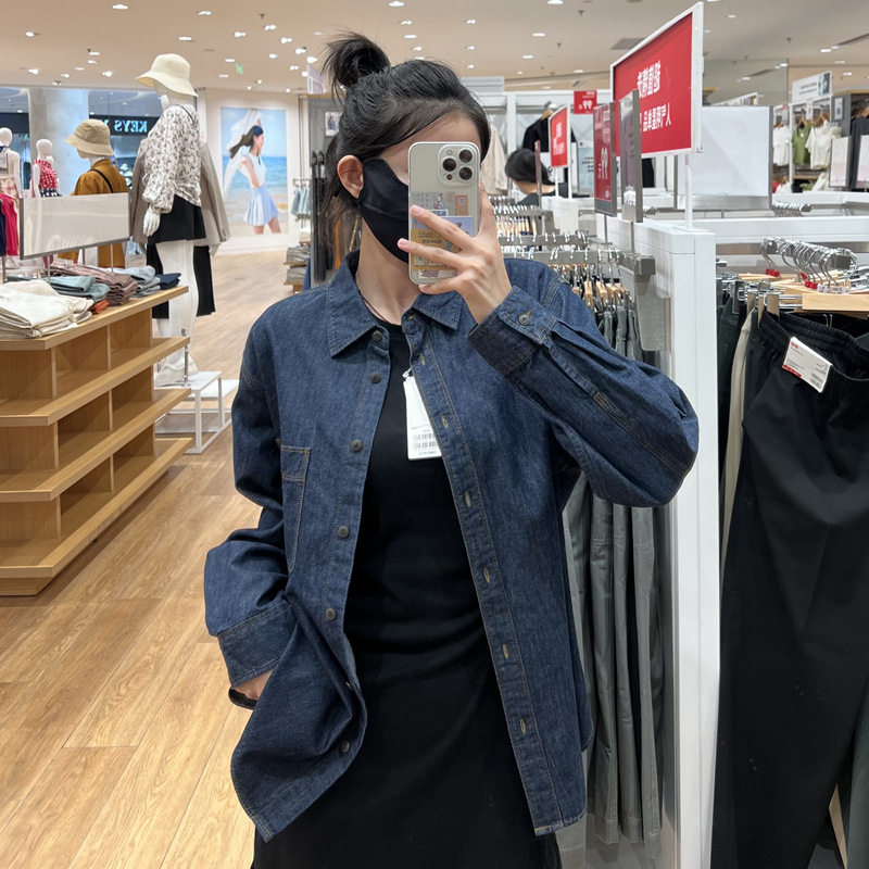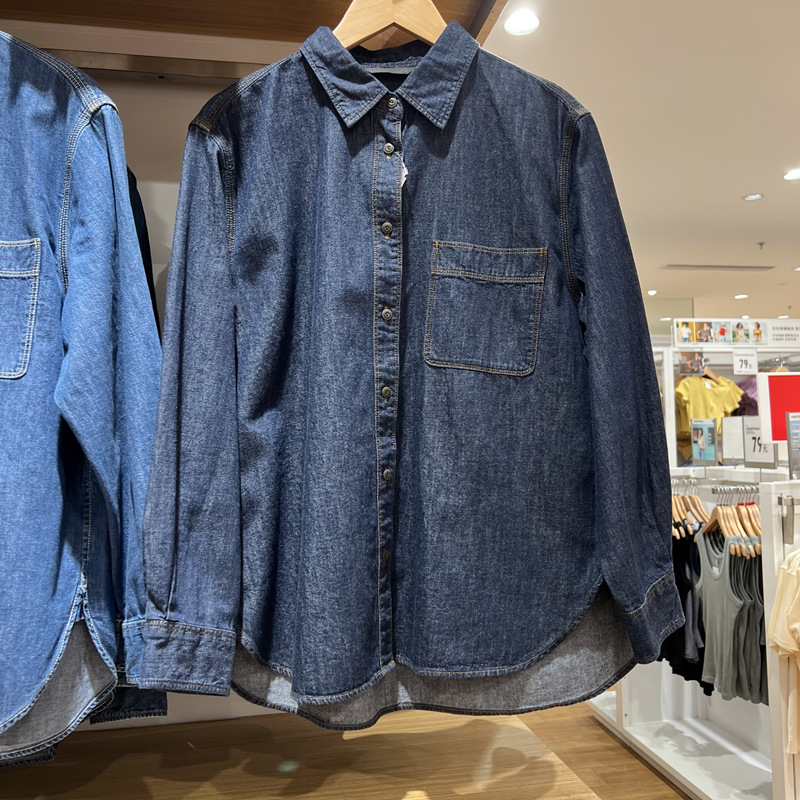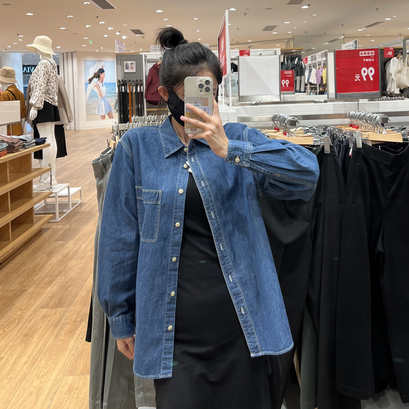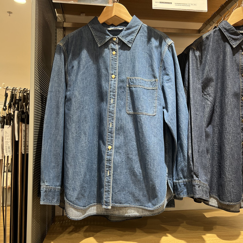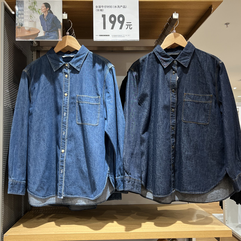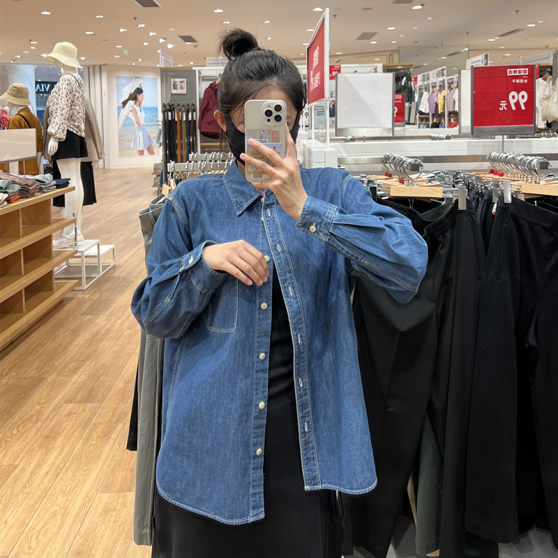 데님 셔츠 여성 내부 입고 봄과 가을 새로운 디자인 센스 틈새 재킷 슬리밍 레트로 쌓인 프랑스 셔츠 긴 소매스토어 가기