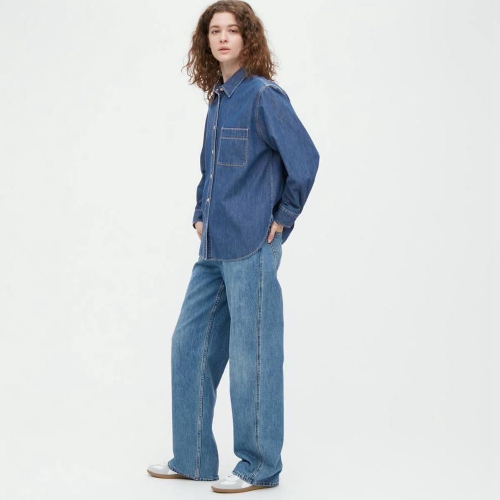 데님 셔츠 여성 내부 입고 봄과 가을 새로운 디자인 센스 틈새 재킷 슬리밍 레트로 쌓인 프랑스 셔츠 긴 소매