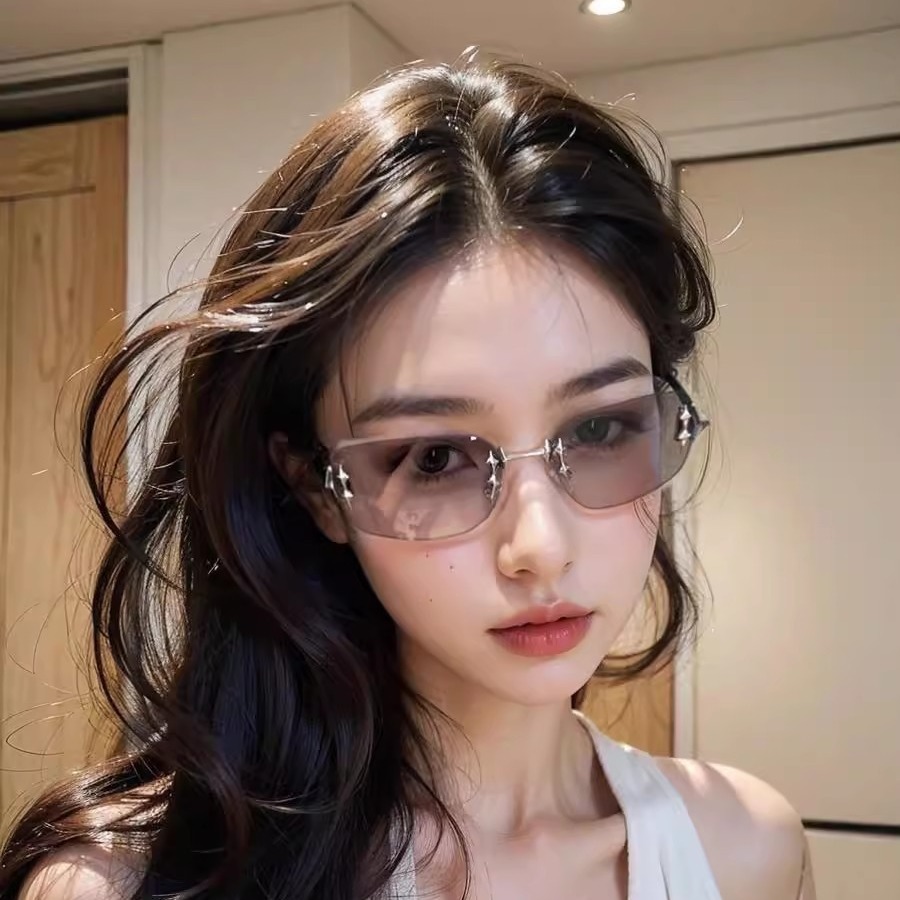 유럽과 미국 스타일의 스타 스퀘어 고양이의 눈 프레임리스 gm 선글라스 핫 소녀 스트리트 사진 하이 엔드 2024 새로운 여성 패션