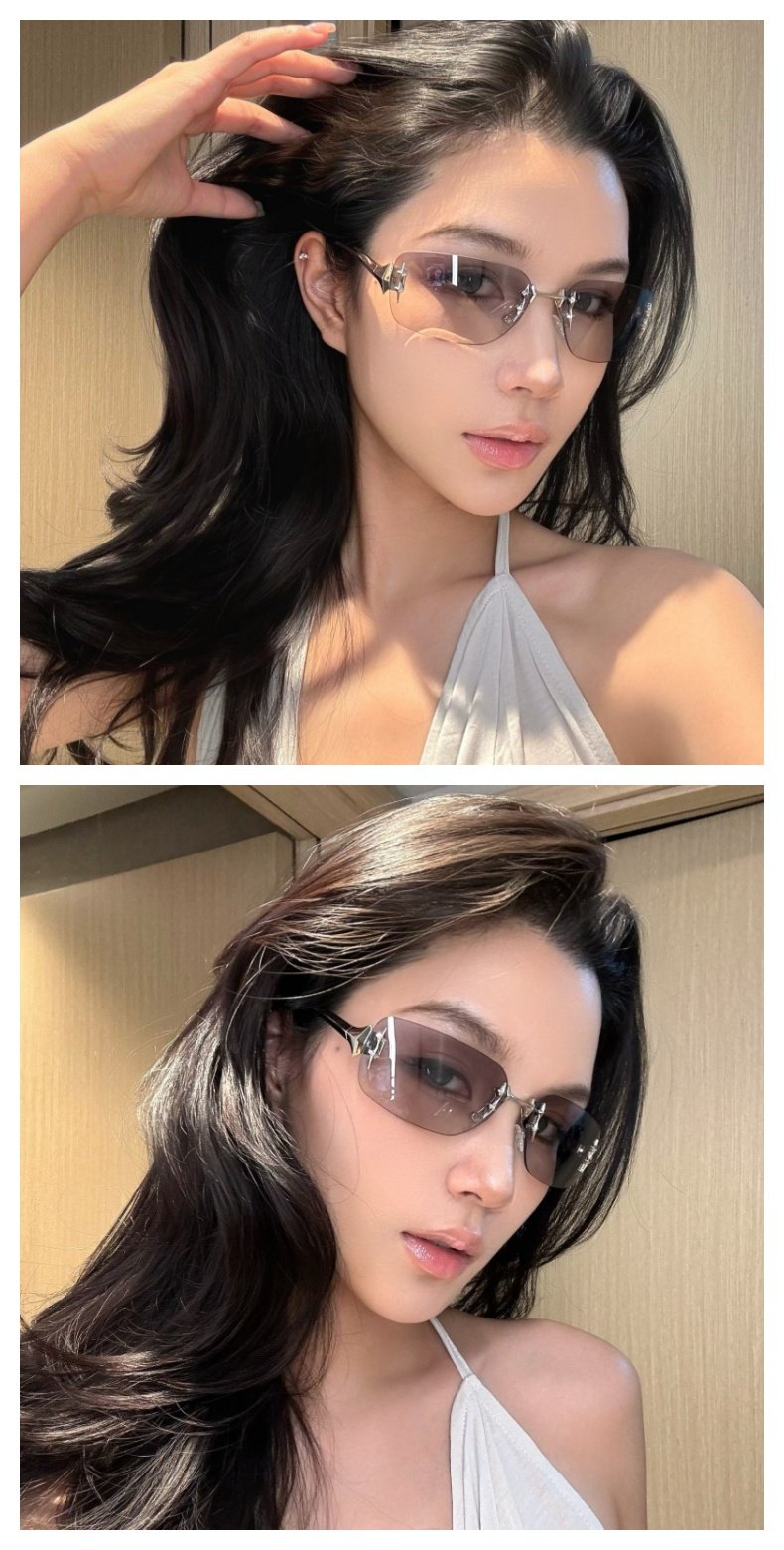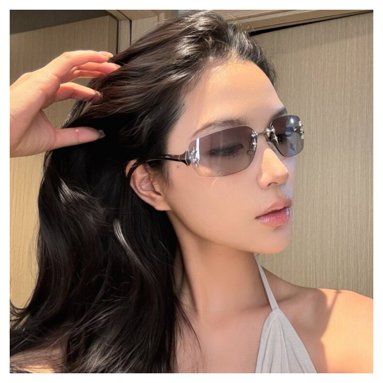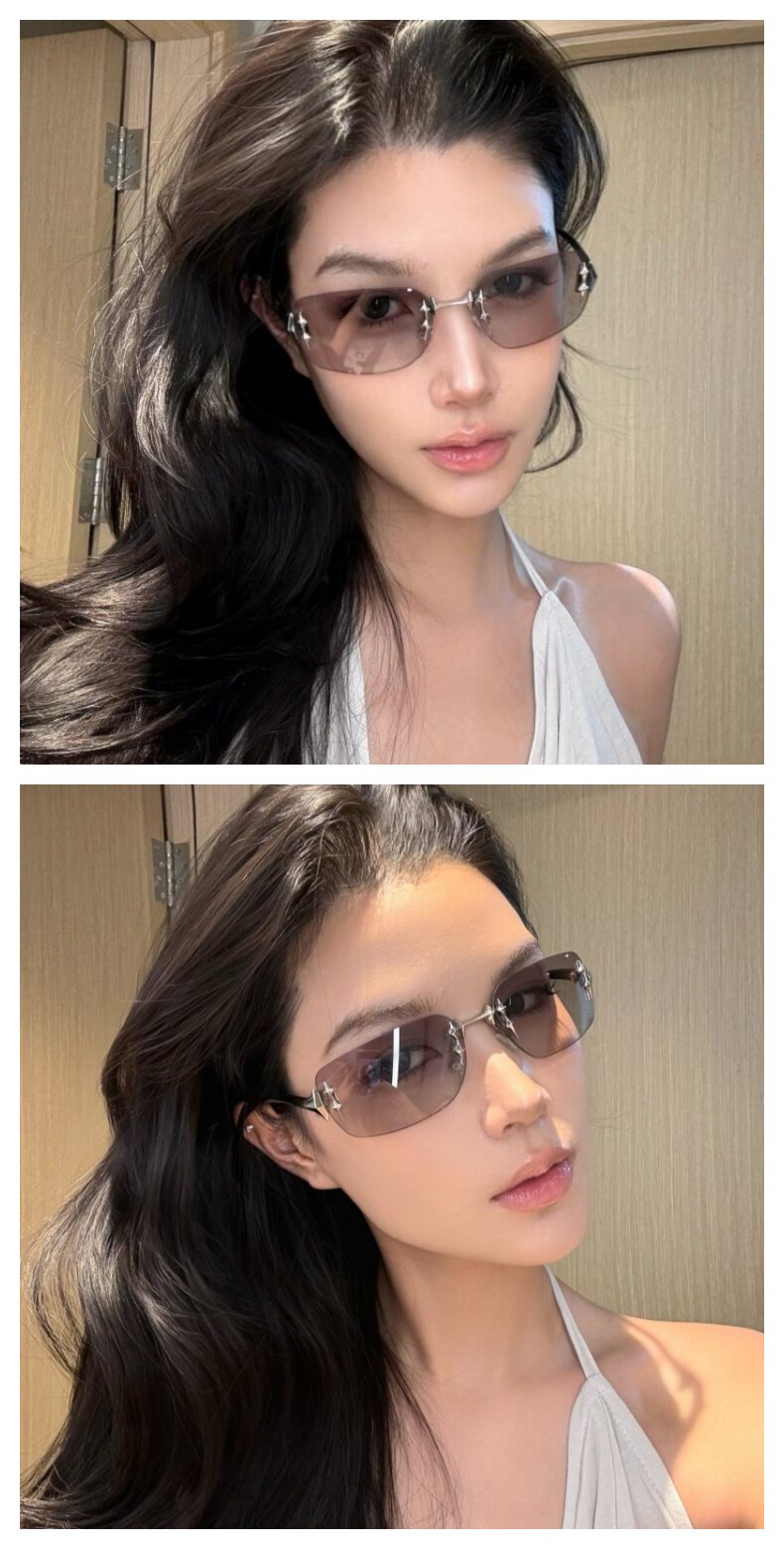 유럽과 미국 스타일의 스타 스퀘어 고양이의 눈 프레임리스 gm 선글라스 핫 소녀 스트리트 사진 하이 엔드 2024 새로운 여성 패션스토어 가기