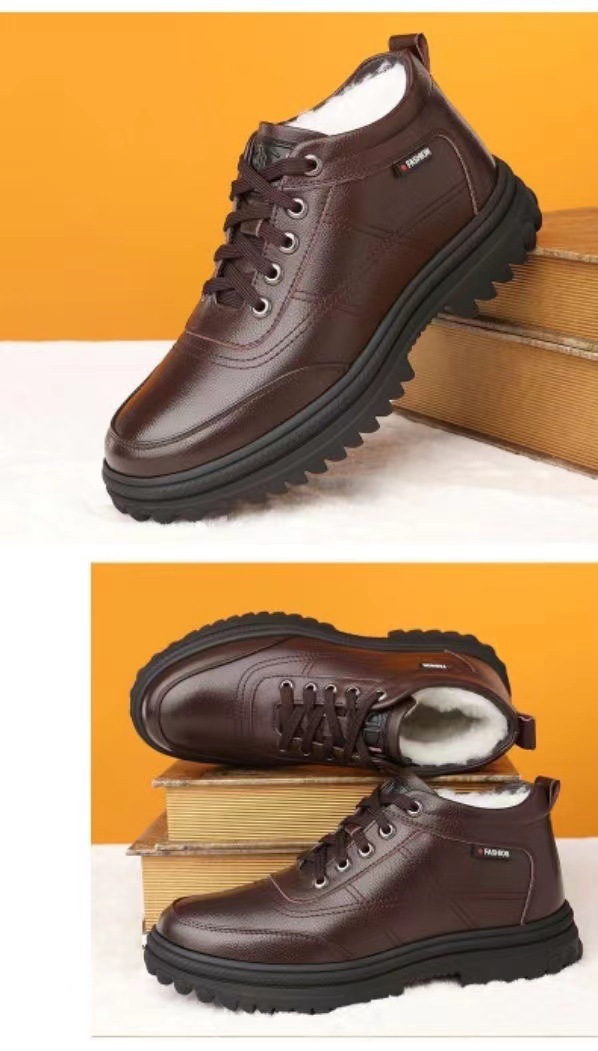 겨울 남성용 코튼 슈즈 하이 탑 기모 두꺼운 모피 코튼 슈즈 통합 스노우 부츠 남성용 간단한 캐주얼 따뜻한 가죽 신발스토어 가기