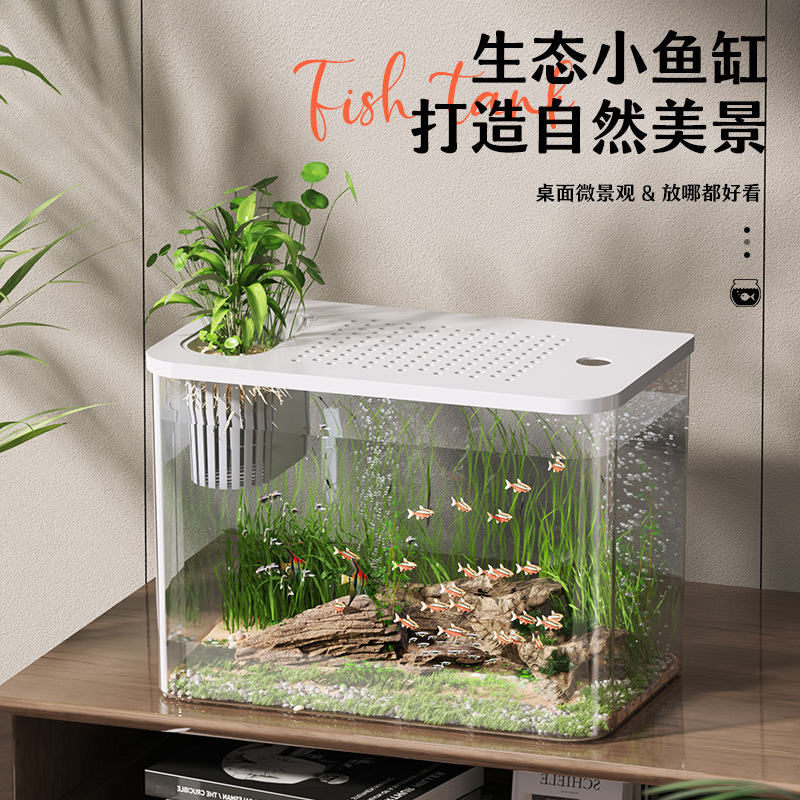 물고기 탱크 투명한 생태 풍경 수족관 게으른 금붕어 탱크 가정용 거실 발코니 중소 생태 데스크탑 탱크