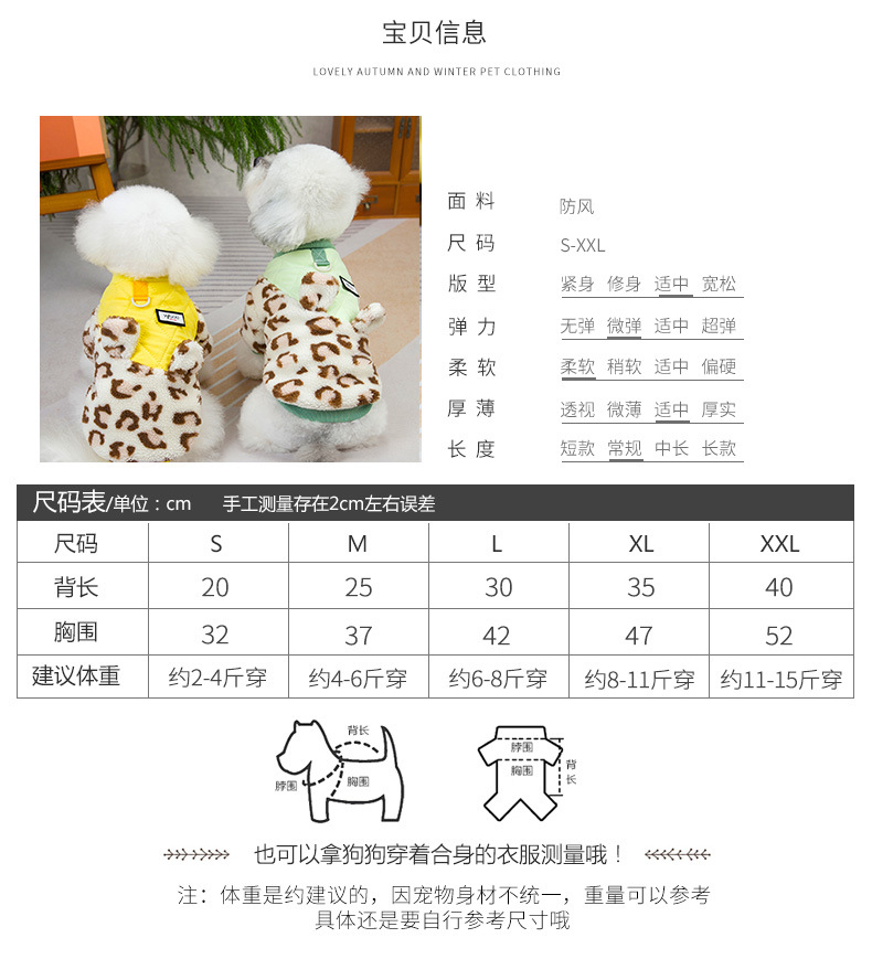 개 옷 가을과 겨울 두꺼운 고양이 공주 귀여운 표범 견인 면 옷 작은 개 테디 애완 동물 6522스토어 가기