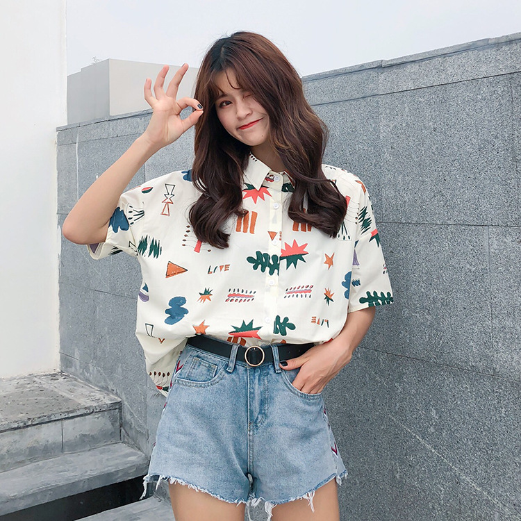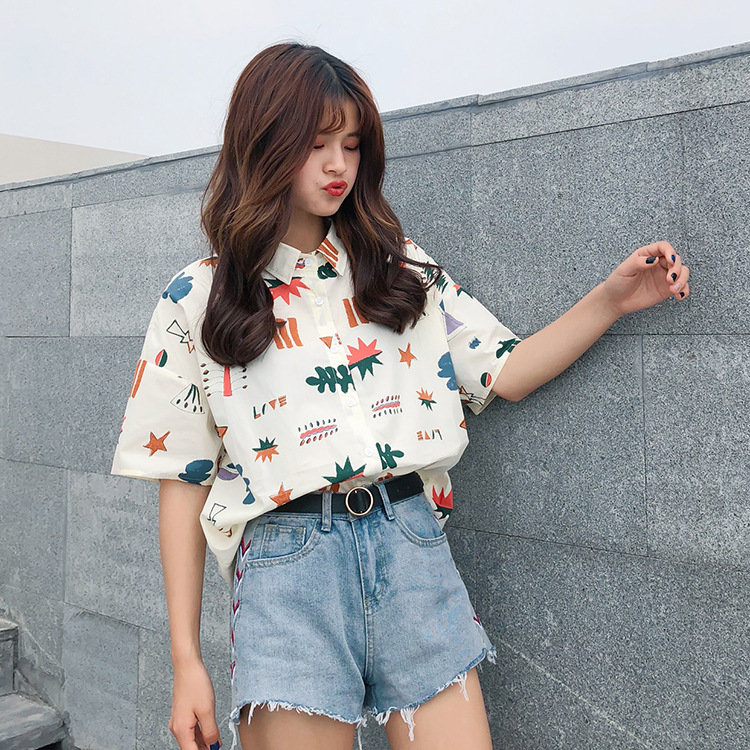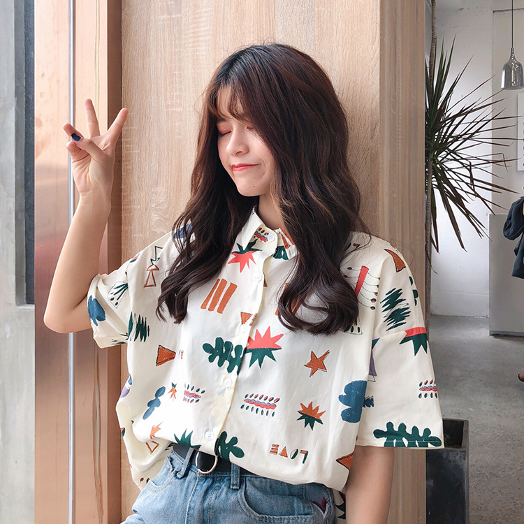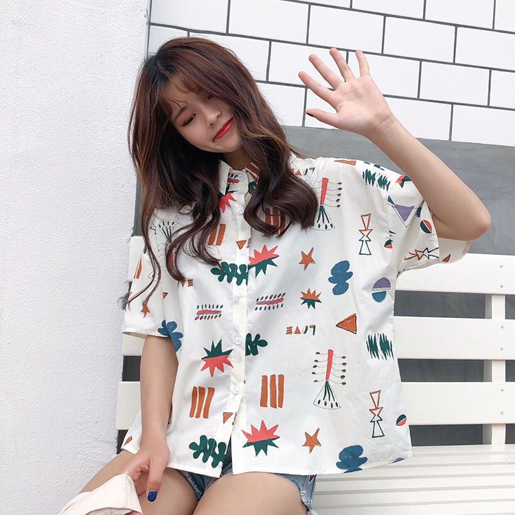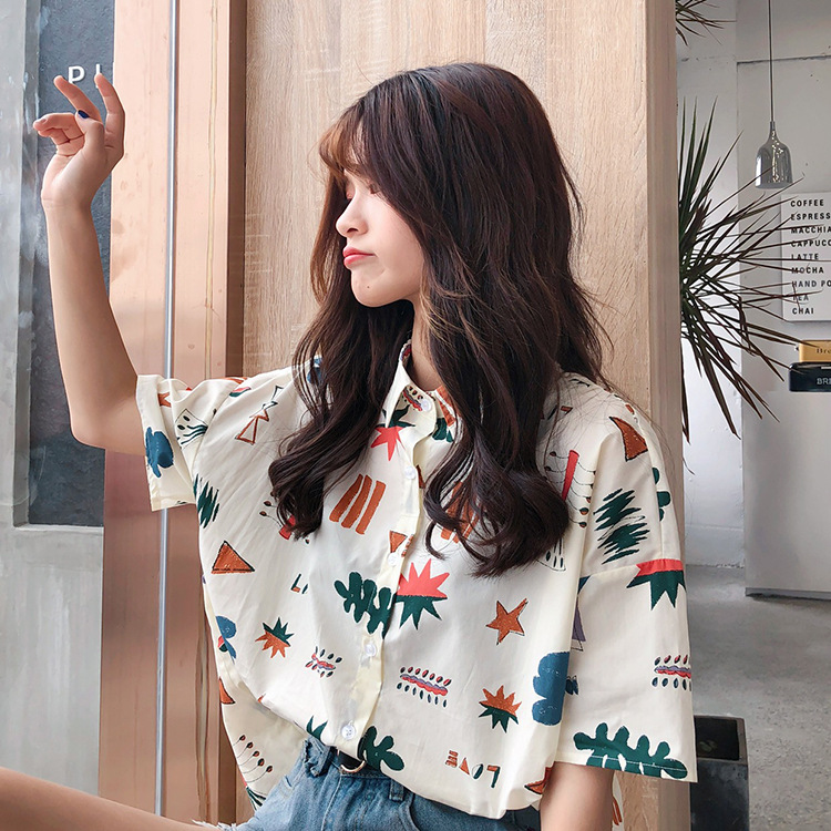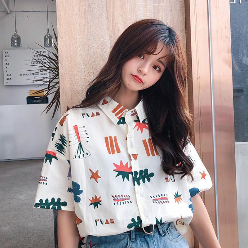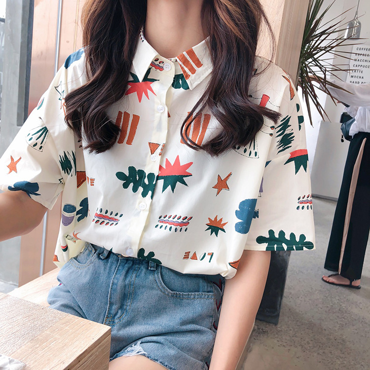 달콤한 쉬폰 셔츠 여자 2024 년 여름 새로운 한국식 느슨한 올매치 탑 디자인 홍콩 스타일 학생 셔츠스토어 가기