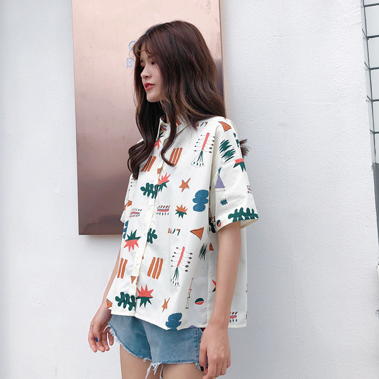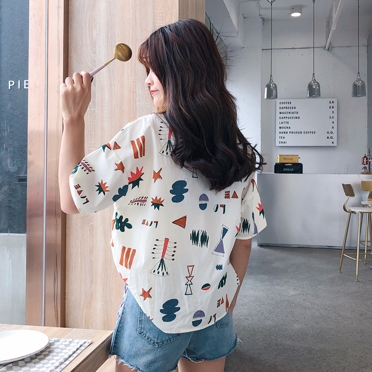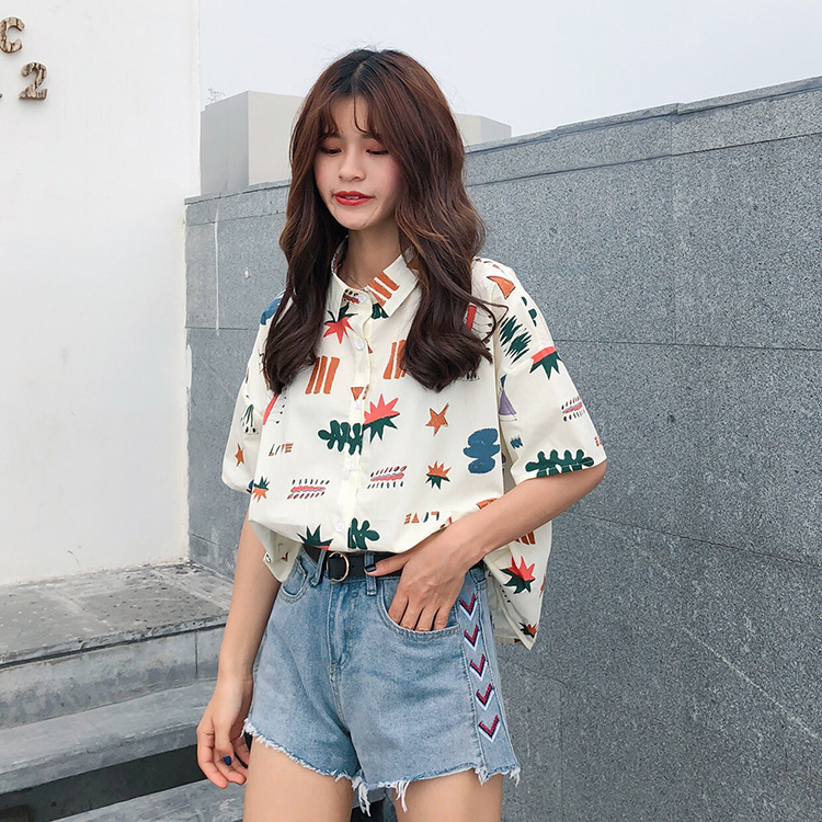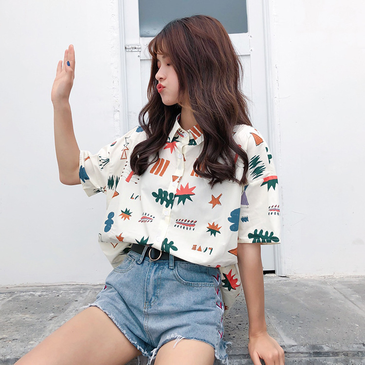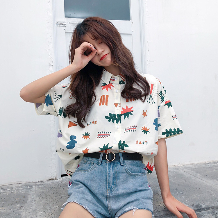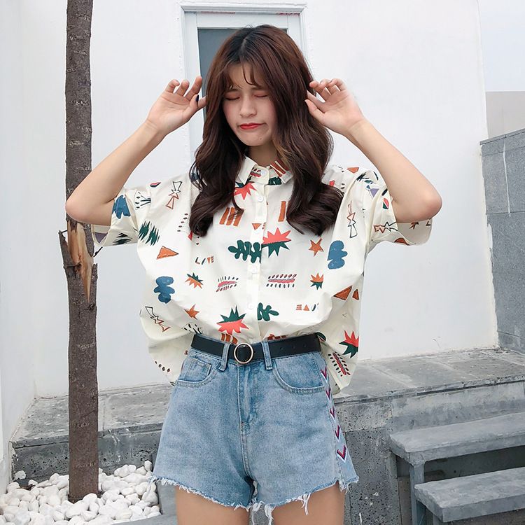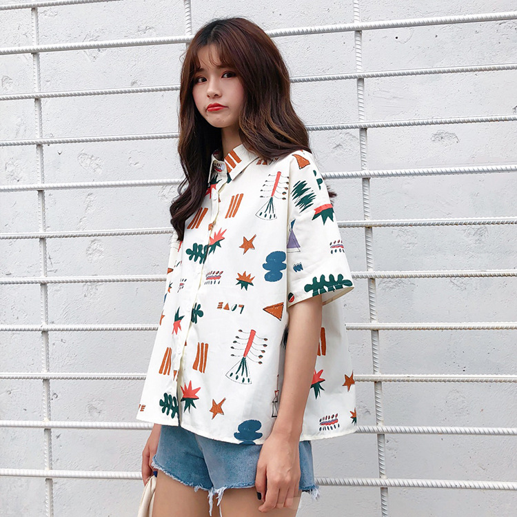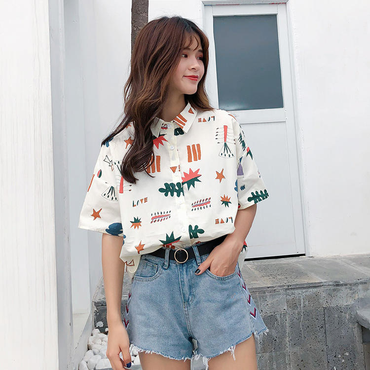 달콤한 쉬폰 셔츠 여자 2024 년 여름 새로운 한국식 느슨한 올매치 탑 디자인 홍콩 스타일 학생 셔츠스토어 가기