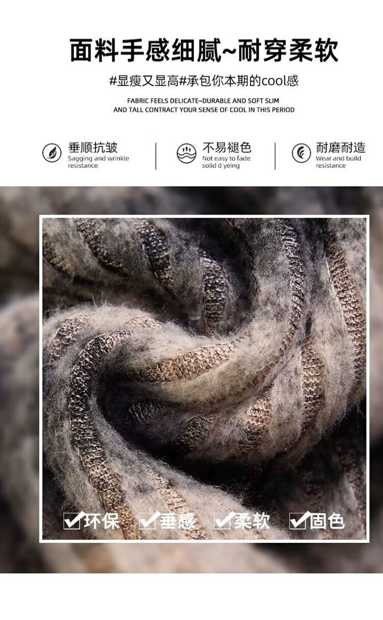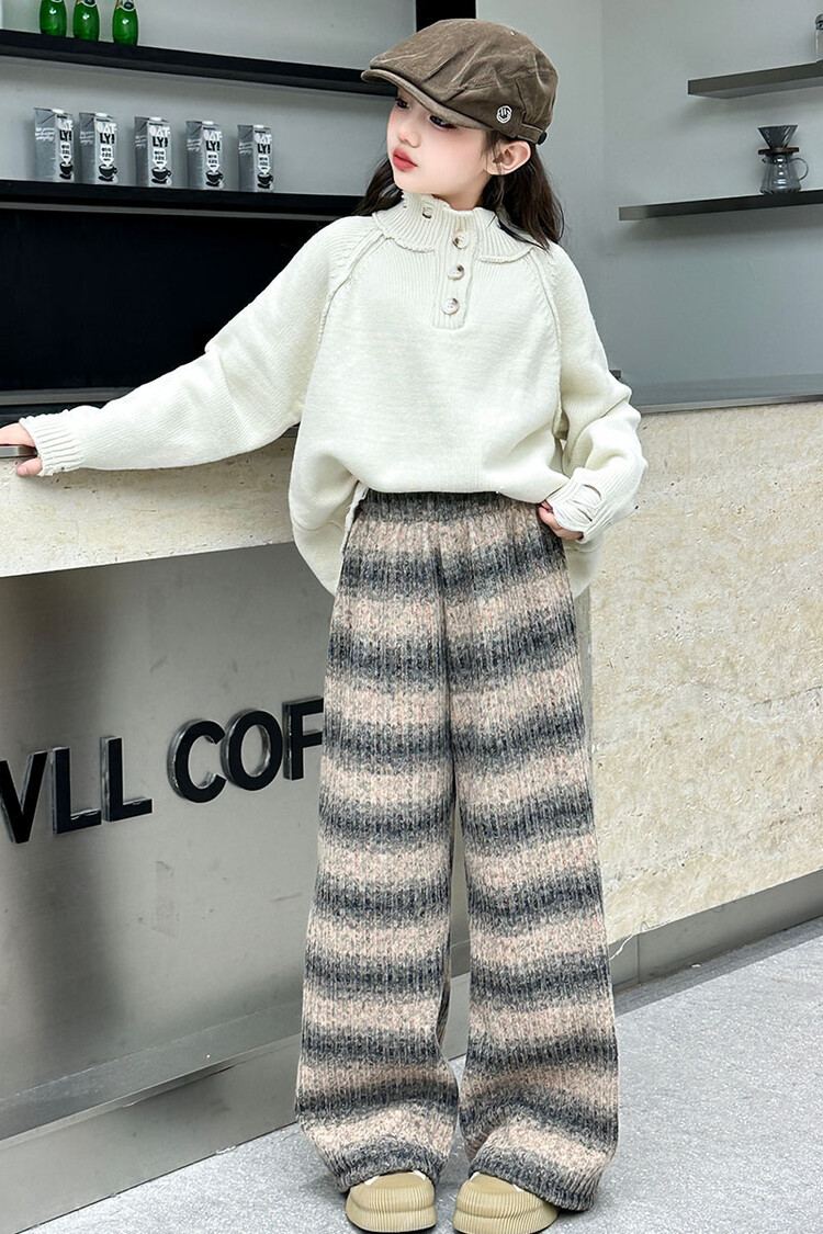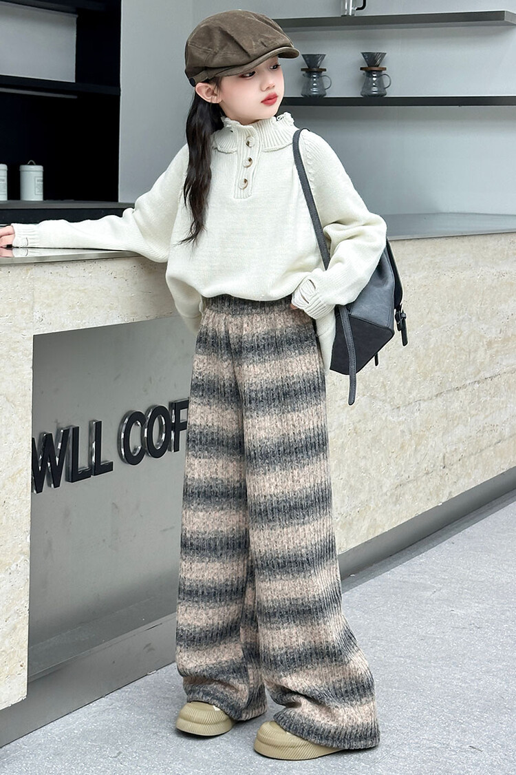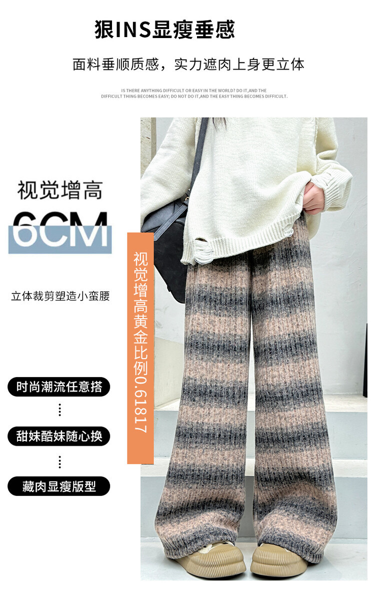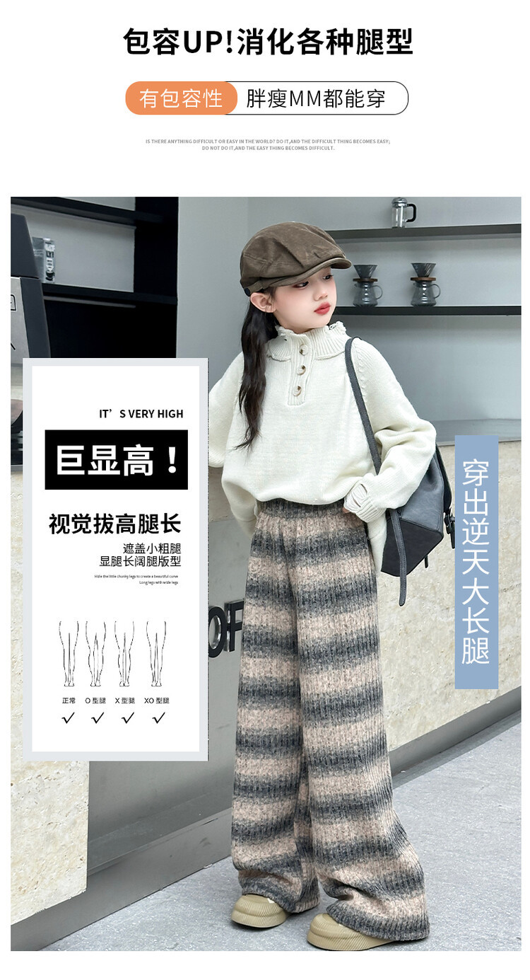 소녀 기모 찹쌀 바지 2024 가을/겨울 새로운 니트 소프트 왁스 염색 스트라이프 넓은 다리 바지